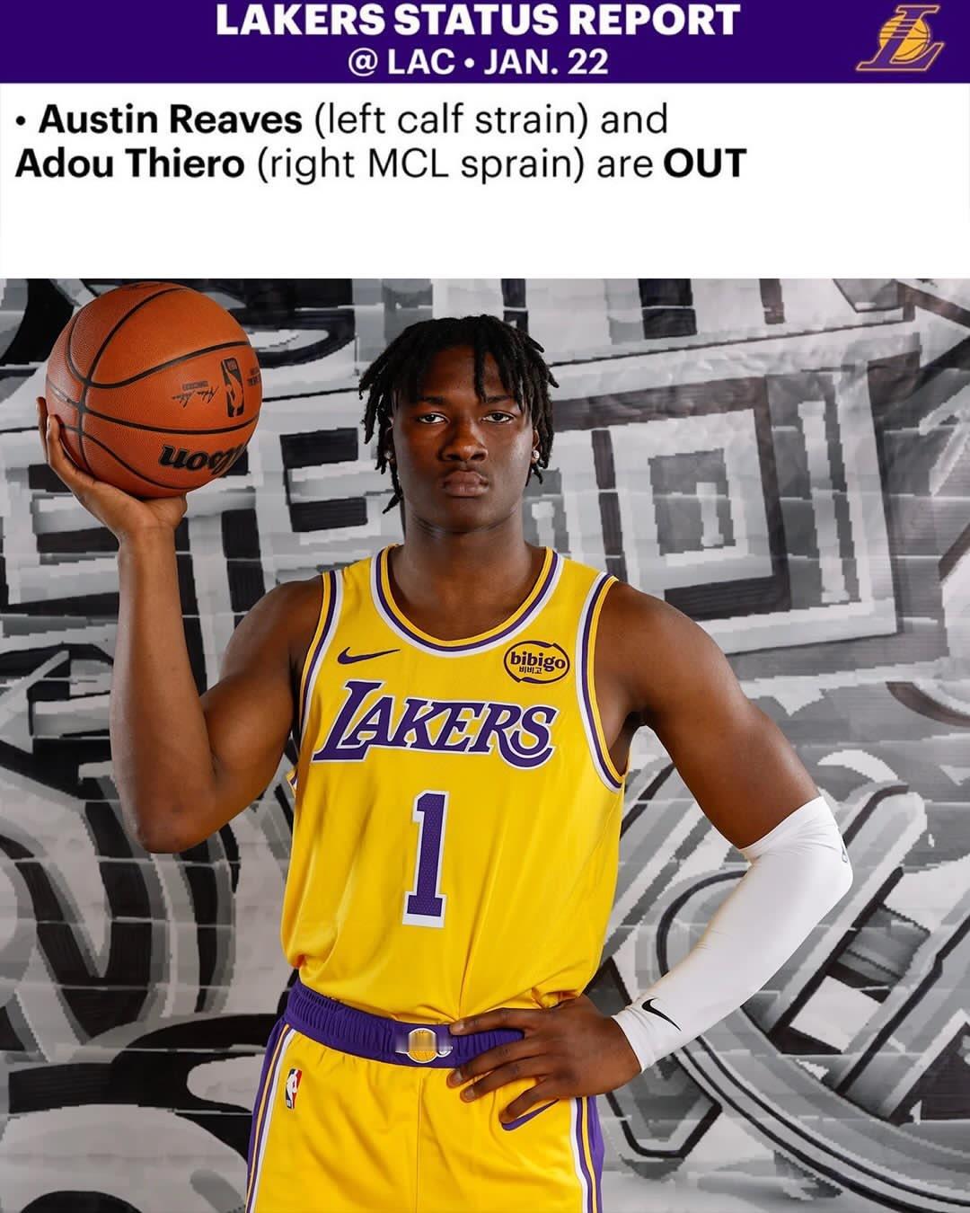 明日的洛城德比湖人依旧是里夫斯和阿杜打不了,上场被打到眼睛的艾顿并不在伤病名单中