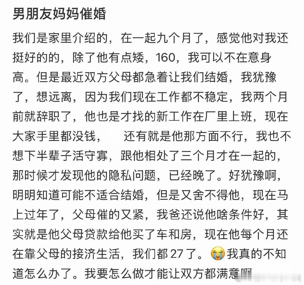 男朋友的妈妈催促我们结婚。