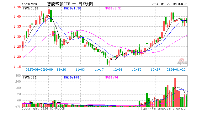 1月22日,智能驾驶ETF(516520)跌0.22%,成交额1.49亿元。当日份额减少2200.00万份,最新份额为8.62亿份,近20个交易日份额增加4.02亿份。最新资产净值计算值为11.85亿元。