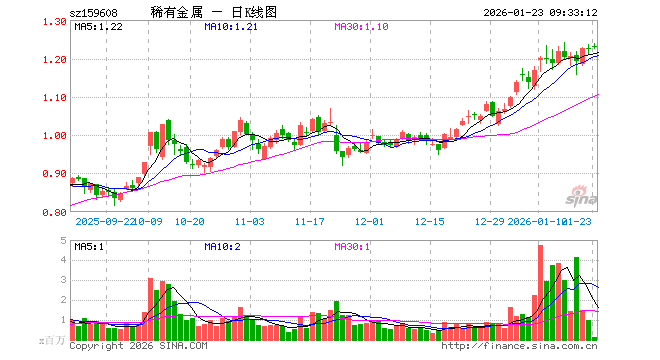 1月23日,稀有金属ETF(159608)开盘涨0.57%,报1.231元。稀有金属ETF(159608)重仓股方面,洛阳钼业开盘涨1.28%,北方稀土涨0.82%,华友钴业涨0.34%,盐湖股份涨1.11%,赣锋锂业涨1.63%,天齐锂业涨1.65%,中矿资源涨0.94%,厦门钨业涨0.34%,中国稀土涨0.60%,西部超导涨0.19%。