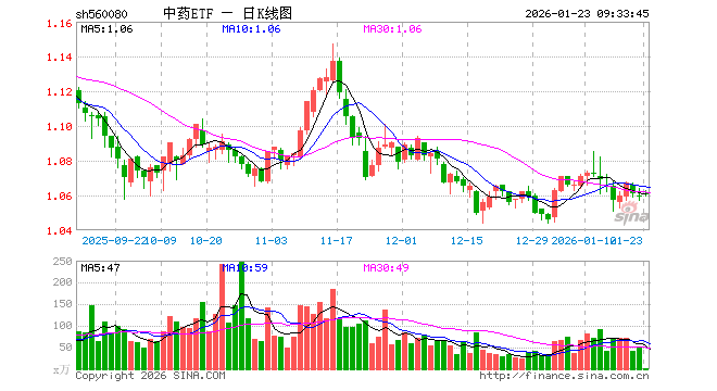1月23日,中药ETF(560080)开盘涨0.09%,报1.061元。中药ETF(560080)重仓股方面,云南白药开盘涨0.05%,片仔癀跌0.01%,同仁堂涨0.07%,东阿阿胶跌0.06%,华润三九涨0.32%,吉林敖东涨0.00%,白云山涨0.08%,以岭药业涨3.11%,达仁堂涨0.26%,众生药业涨0.57%。