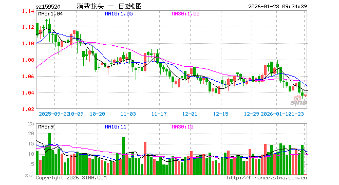 1月23日,消费龙头ETF(159520)开盘涨0.00%,报1.036元。消费龙头ETF(159520)重仓股方面,贵州茅台开盘涨0.00%,美的集团涨0.10%,伊利股份涨0.00%,格力电器涨0.30%,牧原股份涨0.00%,福耀玻璃涨0.20%,赛力斯跌0.06%,海尔智家涨0.31%,中国中免涨0.01%,温氏股份涨0.00%。