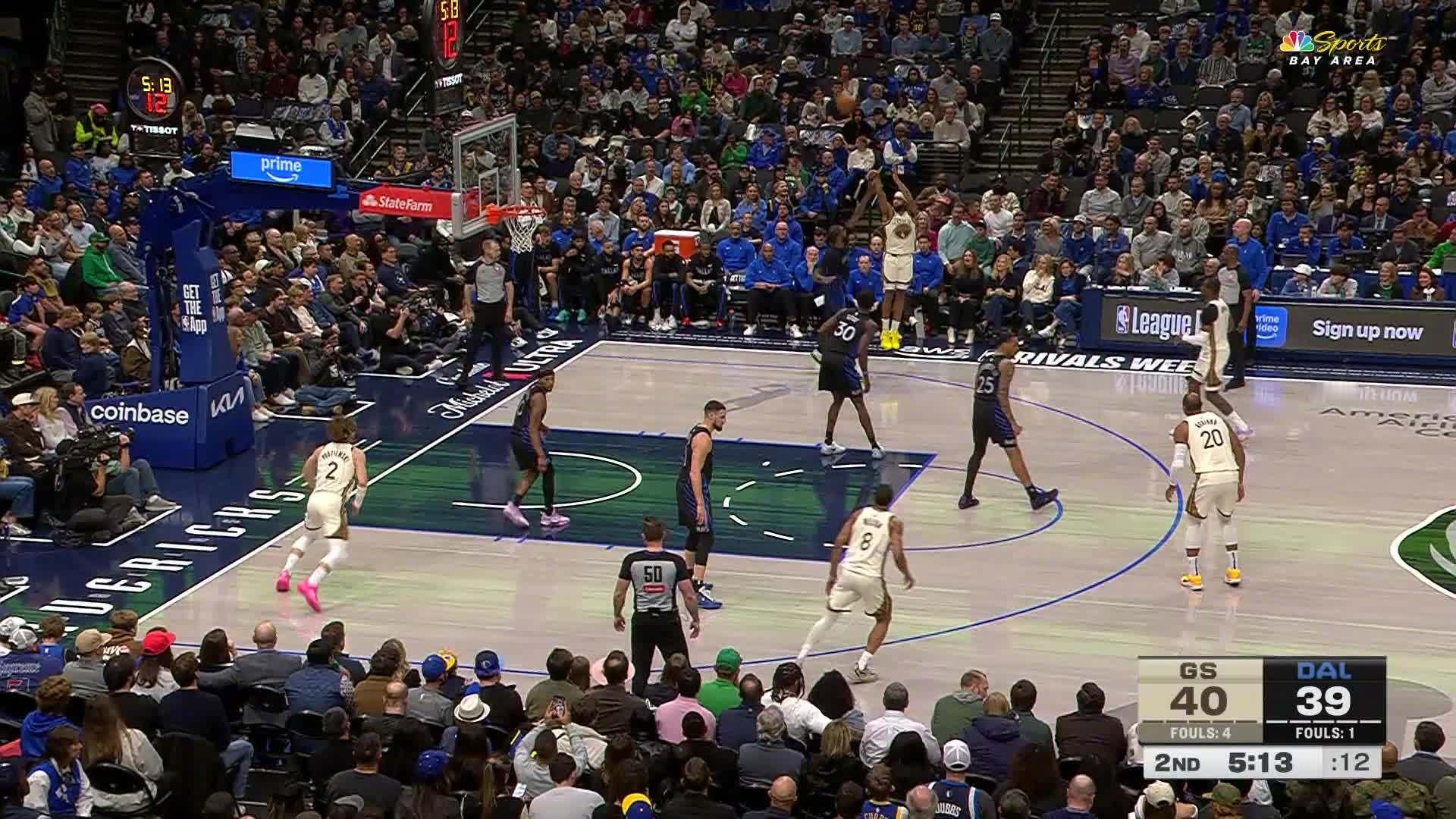 穆迪侧翼三分👌勇士43:39独行侠。勇士vs独行侠