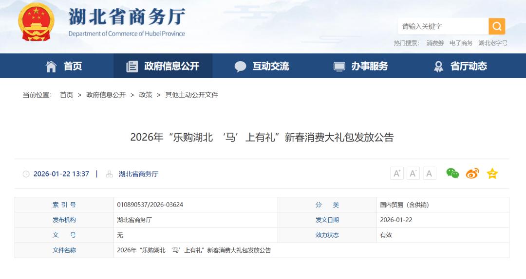 湖北省商务厅发布公告,
