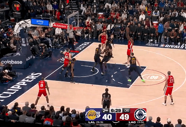 伦纳德顶开八村垒跳投命中拿到16分,快船领先湖人11分