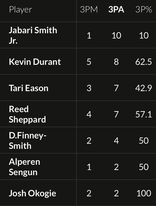 根据数据统计,贾巴里本场三分10中1,其余球员合计30中17。
