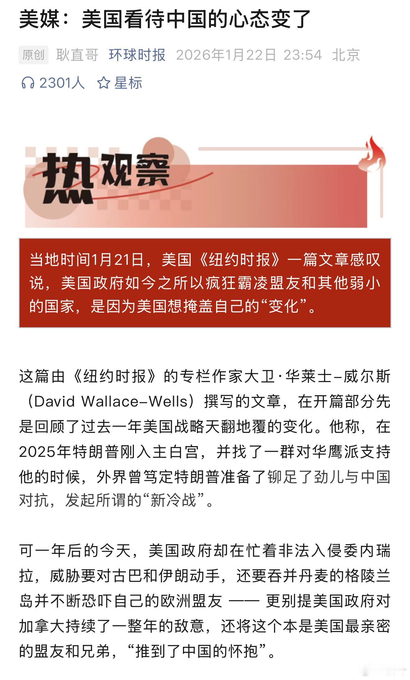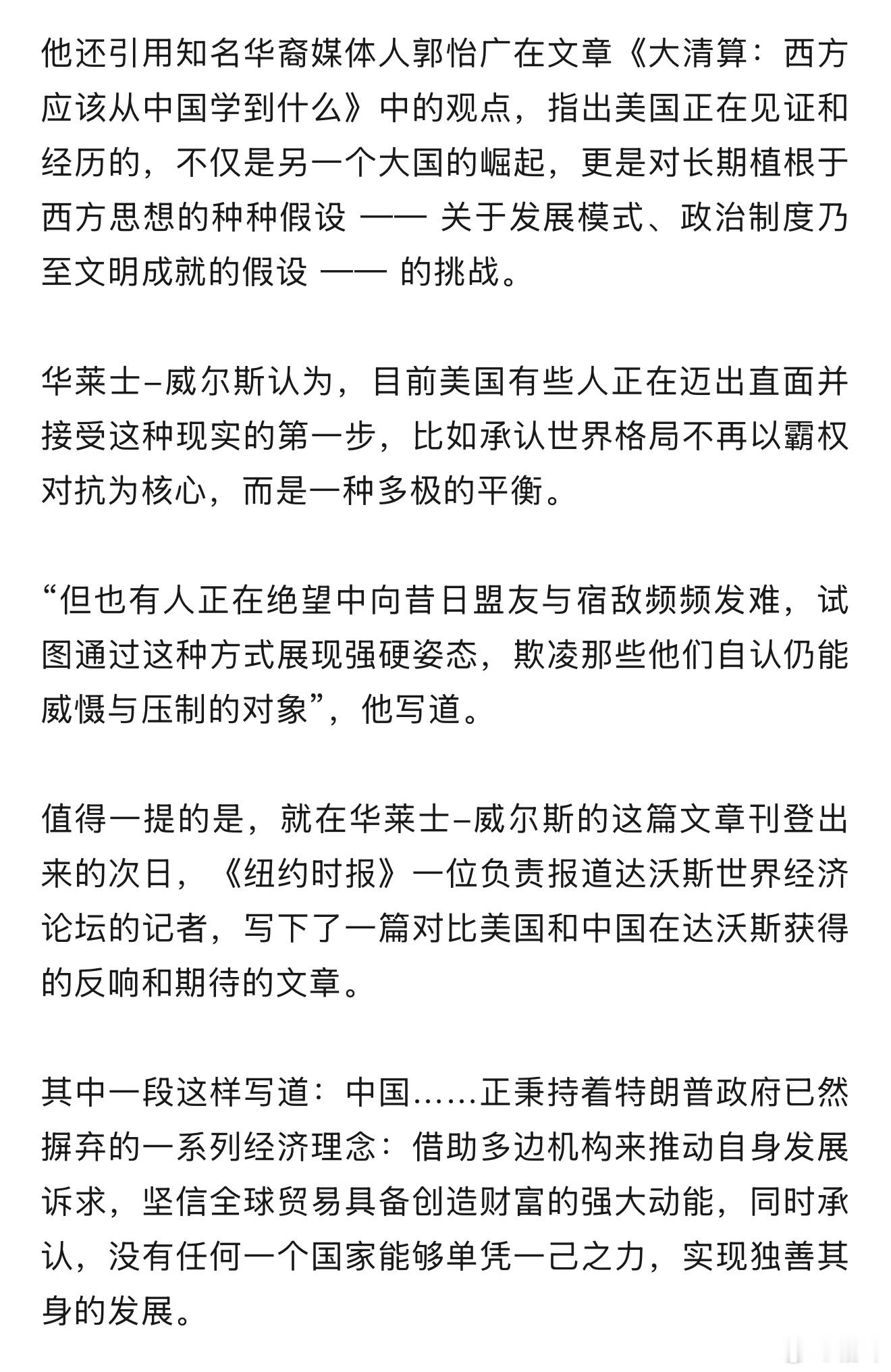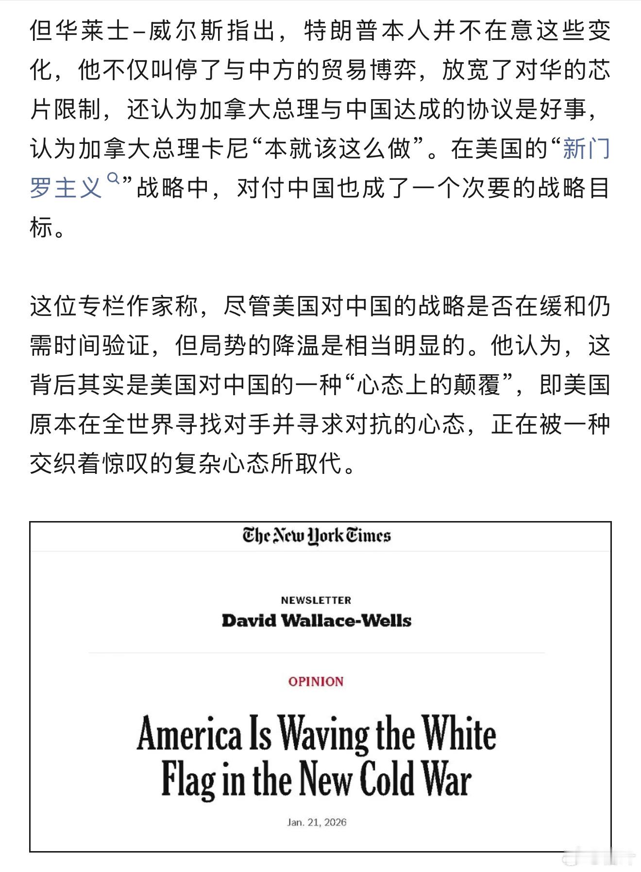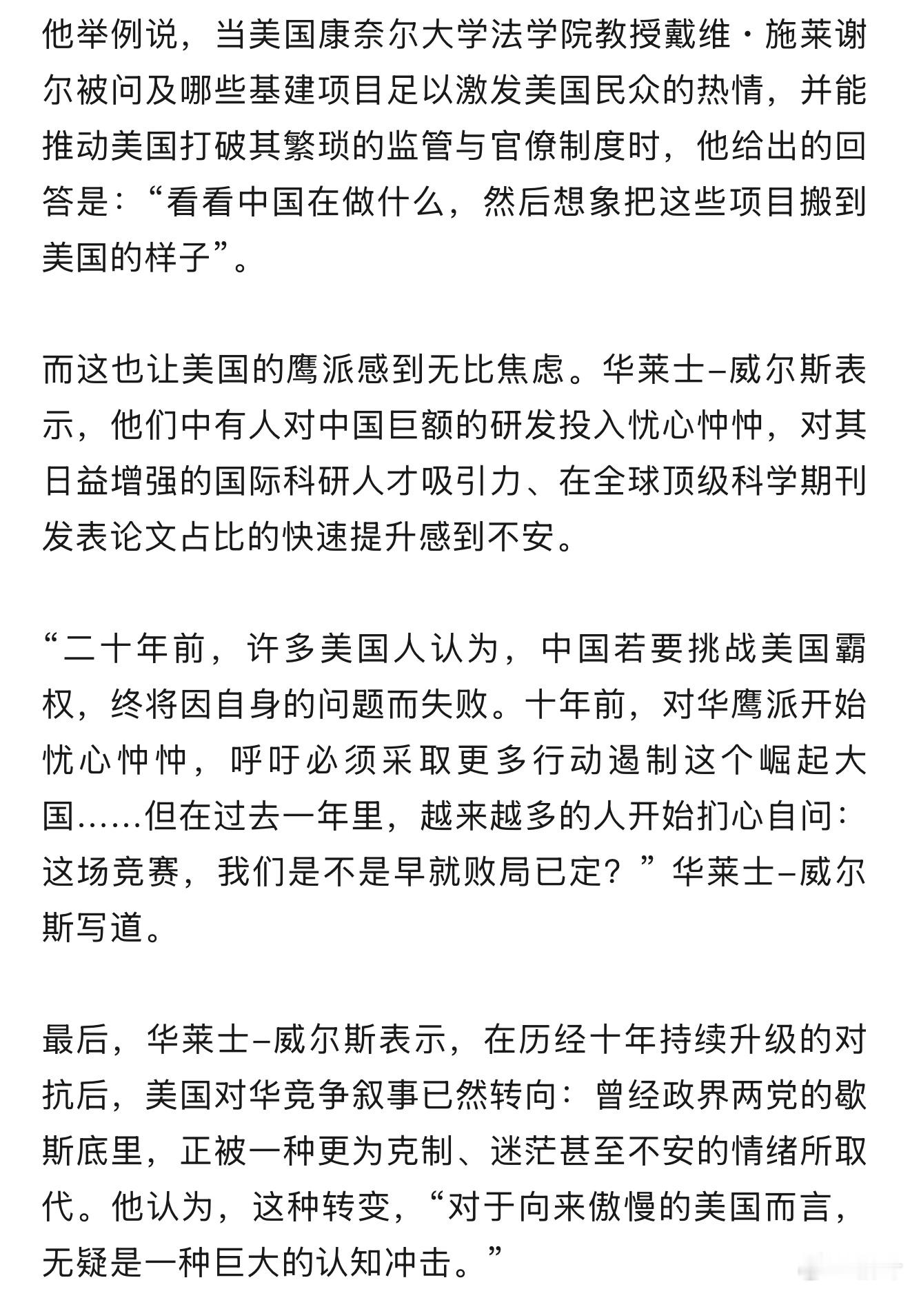 美国真正焦虑的是中国崛起对“西方文明优越论”的颠覆。美媒风向转变正推动公众接受“