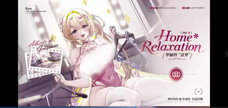阿尔贝托·迪·朱塞诺的换装「华丽的“意外”」发生在一片混乱的化妆间内,此处正散落着少女不小心打翻的私藏衣物。等待指挥官走近后却发现,这场“意外”好似少女有意为之,她正借此机会介绍自己为了与指挥官相处的各种场合下,最适合自己的衣物款式。