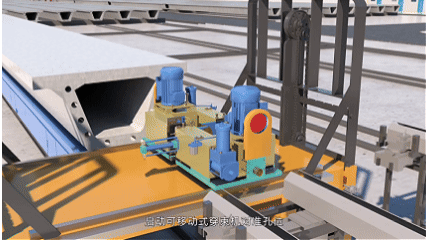 顶板钢筋自动化生产线,如同织毛衣一般,将钢筋按系统预设自动下料分布,置入箍筋后一次弯折成型,随后通过自动焊接,使箍筋与水平筋牢固连接。