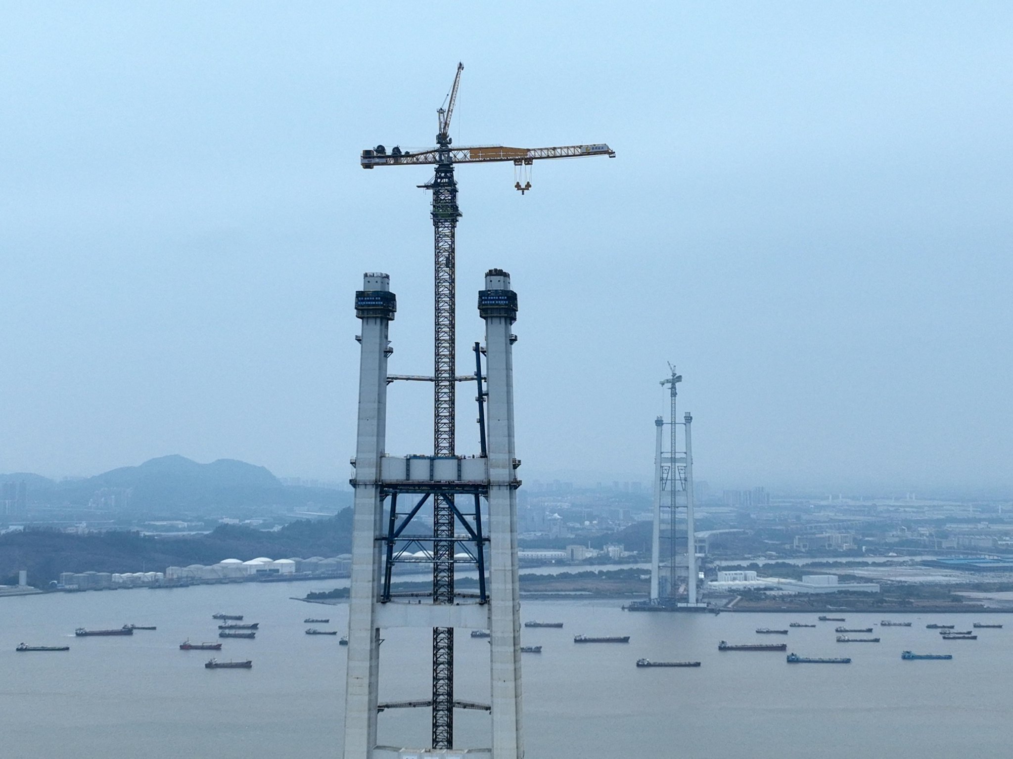 珠江口岸,狮子洋通道项目建设现场如火如荼,这片热土正孕育着桥梁建设的数智化变革。1月22日,狮子洋通道狮子洋大桥T55节段成功吊装,主塔高度突破300米大关,项目迎来2026年“开门红”。