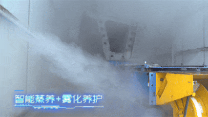 蒸养箱位于制梁厂的终端,上方设有LED屏幕,实时显示蒸养时长、温度、湿度等关键参数。箱体通过物联网温湿度控制系统、自然养护喷雾系统的协同配合,精准调节温度与湿度。