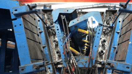 约8小时后,混凝土达到拆模强度。模板系统可自行拆解脱模,能有效减少梁端破损,保证梁体生产质量。