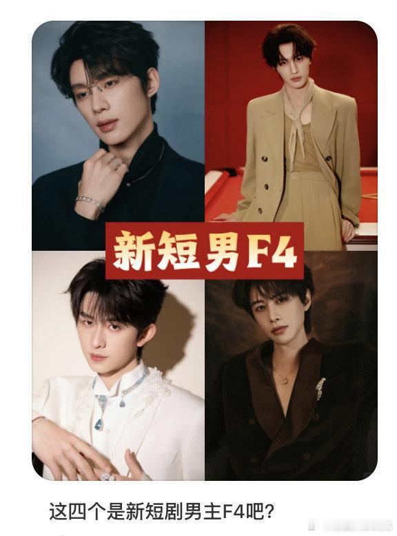 吴添豪张翅陈添祥何健麒 新短男F4 超话数据总结的新短男 F4 来啦!吴添豪、张翅、陈添祥、何健麒凭借高人气入选~ 他们在短剧中的精彩表现吸粉无数,这个 “新短男 F4” 称号你们觉得实至名归吗?