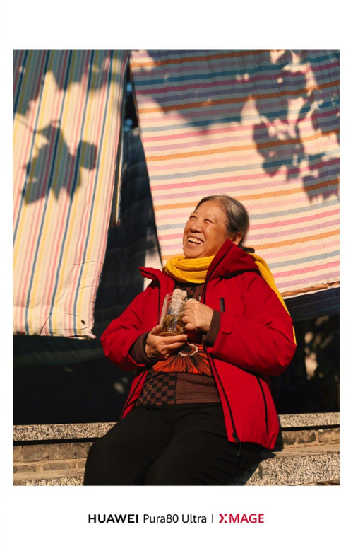 除了主摄表现亮眼,华为Pura80Ultra的长焦能力更是领先,作为业界首创超大底一镜双目长焦镜头机型,它通过重构光学结构,将3.7x中长焦镜头与9.4x超长焦镜头光学焦段合一,配合1/1.28英寸主摄级超大底传感器,打造出业界进光量最大的长焦镜头。拍摄暖光下石阶旁休憩的长辈时,无需刻意凑近打破这份松弛感,3.7x中长焦镜头便能清晰定格她眼角的笑纹,连手中玻璃罐里的草药根须都分明可辨;切换至9.4x超长焦,甚至能捕捉到围巾上细密的织纹细节,充足进光量更让暖光场景下的长焦画面依旧细腻无噪,对偏爱记录人文瞬间的用户来说,体验感直接拉满。