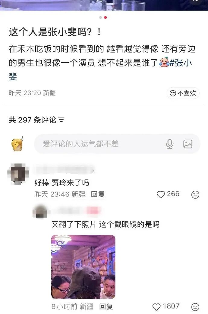1月22日晚,有网友在新疆阿勒泰禾木村贾玲张小斐聚餐吃火锅,两人素颜便装、气氛松弛。