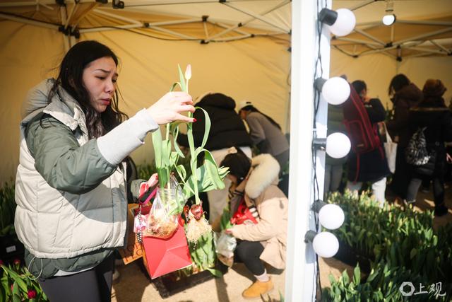 复兴公园内的郁金香采摘体验区,市民花29.9元就能亲手采摘10枝新鲜郁金香。