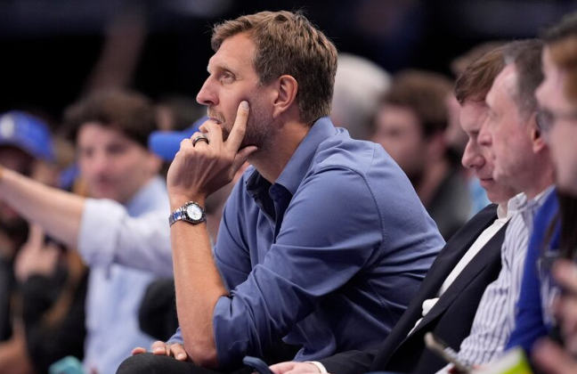 在12月7日达拉斯独行侠对阵休斯敦火箭的比赛第二节开始前,美航中心的现场运营团队在巨型屏幕上切到了一个熟悉的面孔:德克-诺维茨基。