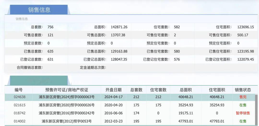 根据网上房地产数据,该项目于2012年3月首开,推出房源195套,至今仍为“在售”状态。