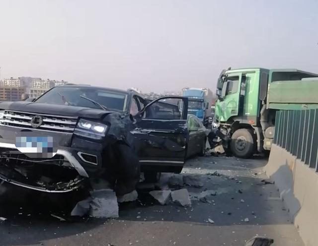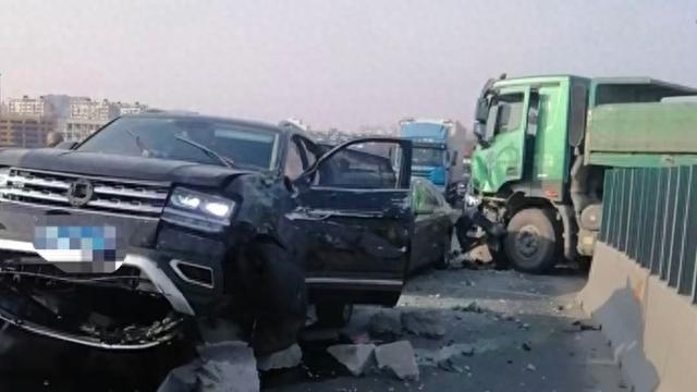 据了解,当时一辆土方车沿S4沪金高速往市区方向行驶,当车辆行驶至奉浦大桥下坡路段时,土方车撞击道路中央的水泥隔离墩,造成隔离墩移位至对向车道上。因事发突然,对向车道上两车驾驶员避让不急,其中一辆SUV撞上隔离墩,另一辆轿车被土方车撞击,事故造成事故车辆不同程度受损。事故发生后,奉浦大桥双向四车道全部堵死,交通阻断,双向各拥堵约5公里。