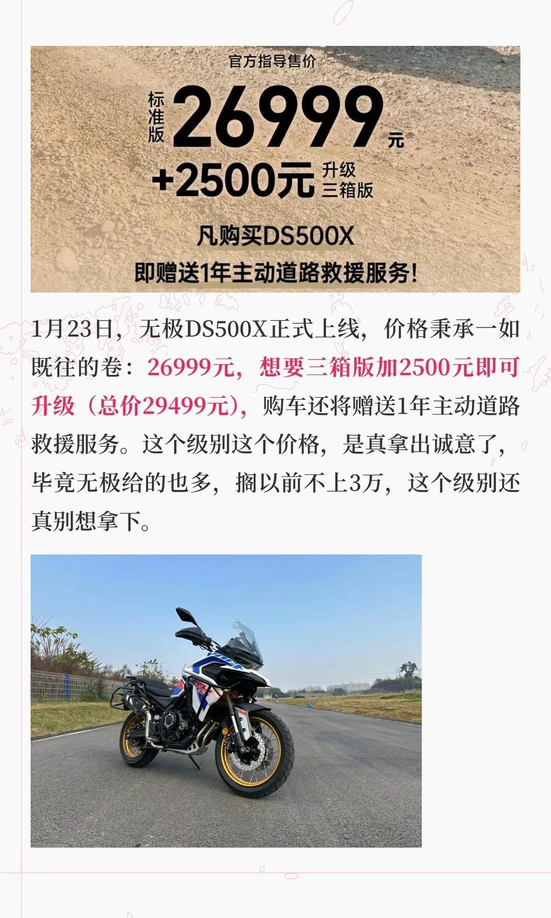26999元,无极DS500X上线。年度卷王!无极DS500X上线,26999元解锁全地形自由无极机车 无极ds500x 新车上市 摩托车