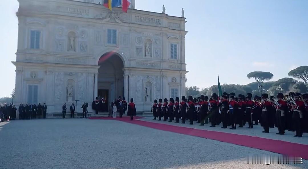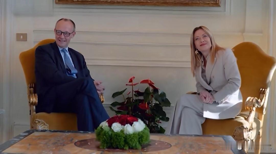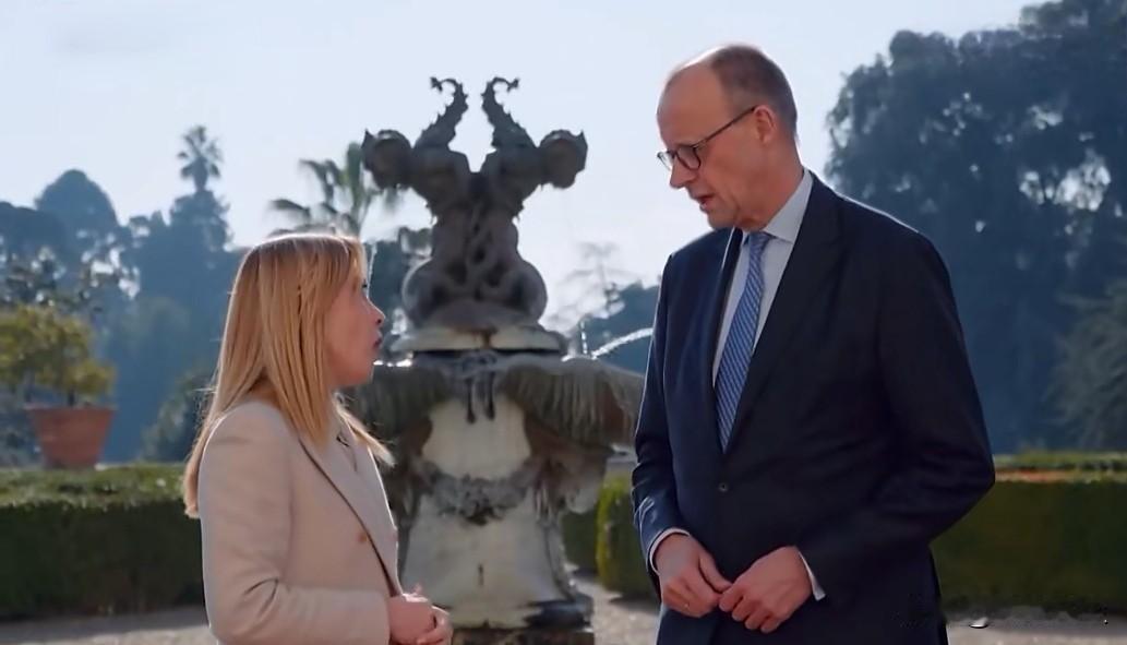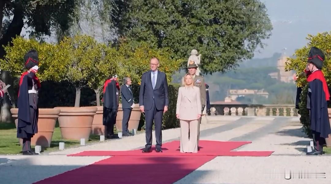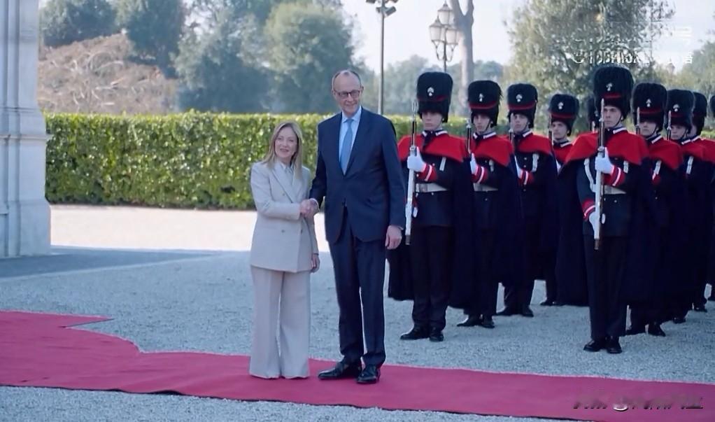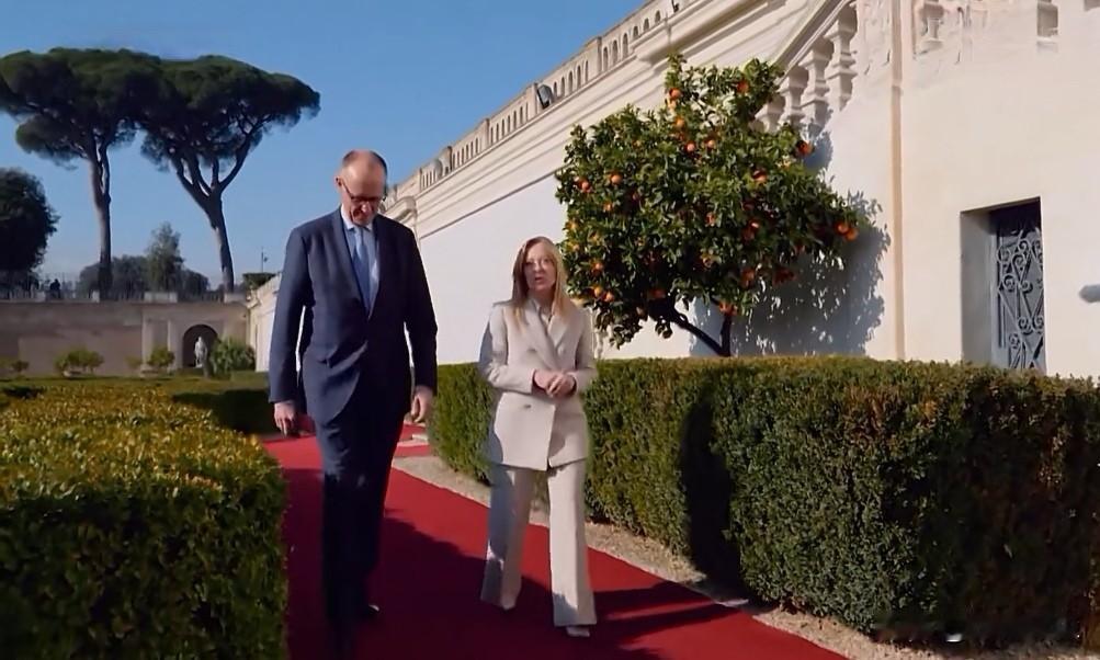 意大利梅洛尼在罗马迎接到访的德国总理默茨。