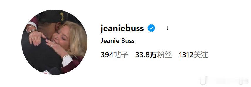 珍妮-巴斯的ins头像一直是20年湖人夺冠后与詹姆斯拥抱的照片!!快船战胜湖人湖人全网热点共创计划