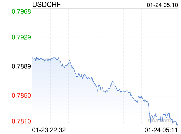 新浪外汇消息2026年01月24日,截至05时10分,外汇市场上美元兑瑞士法郎汇率跌破1美元兑换0.7810瑞士法郎。跌幅为-1.0014%