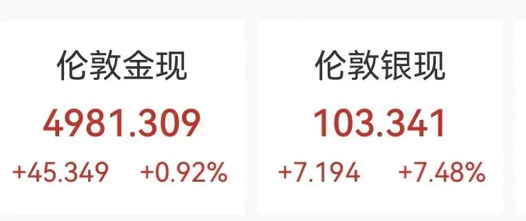 美元走弱助推了金属市场的强势表现,现货黄金小幅上涨,现货白银强势拉升超7%,报103.341美元/盎司。