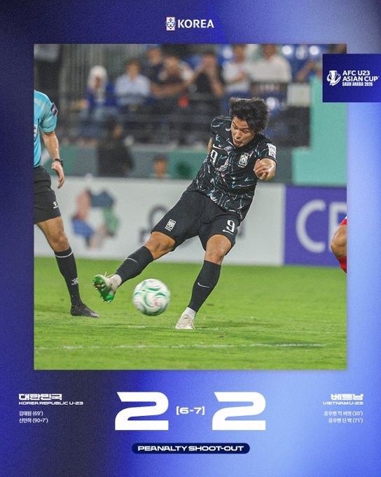 直播吧1月24日讯本届U23亚洲杯季军战已经结束,越南U23常规时间2-2战平韩国U23,最终点球大战获胜。数据统计显示,这也是韩国U23首次负于越南U23。