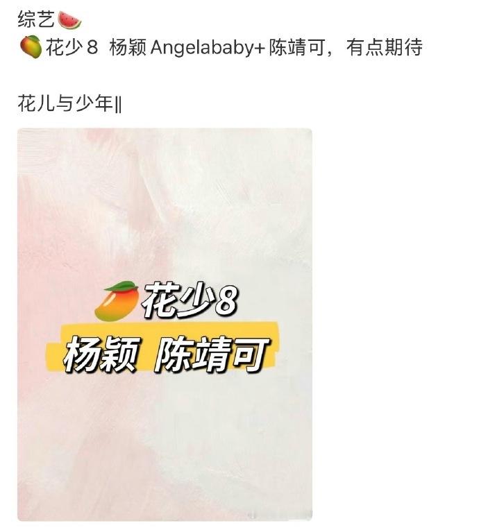 花少 8 的嘉宾阵容成为网络热议点,各类网传名单层出不穷,其中有版本提及 Angelababy 将参与,也让节目未播先有了较高的讨论度。花少8网传嘉宾阵容花少8网传名单网传Angelababy将去花少8