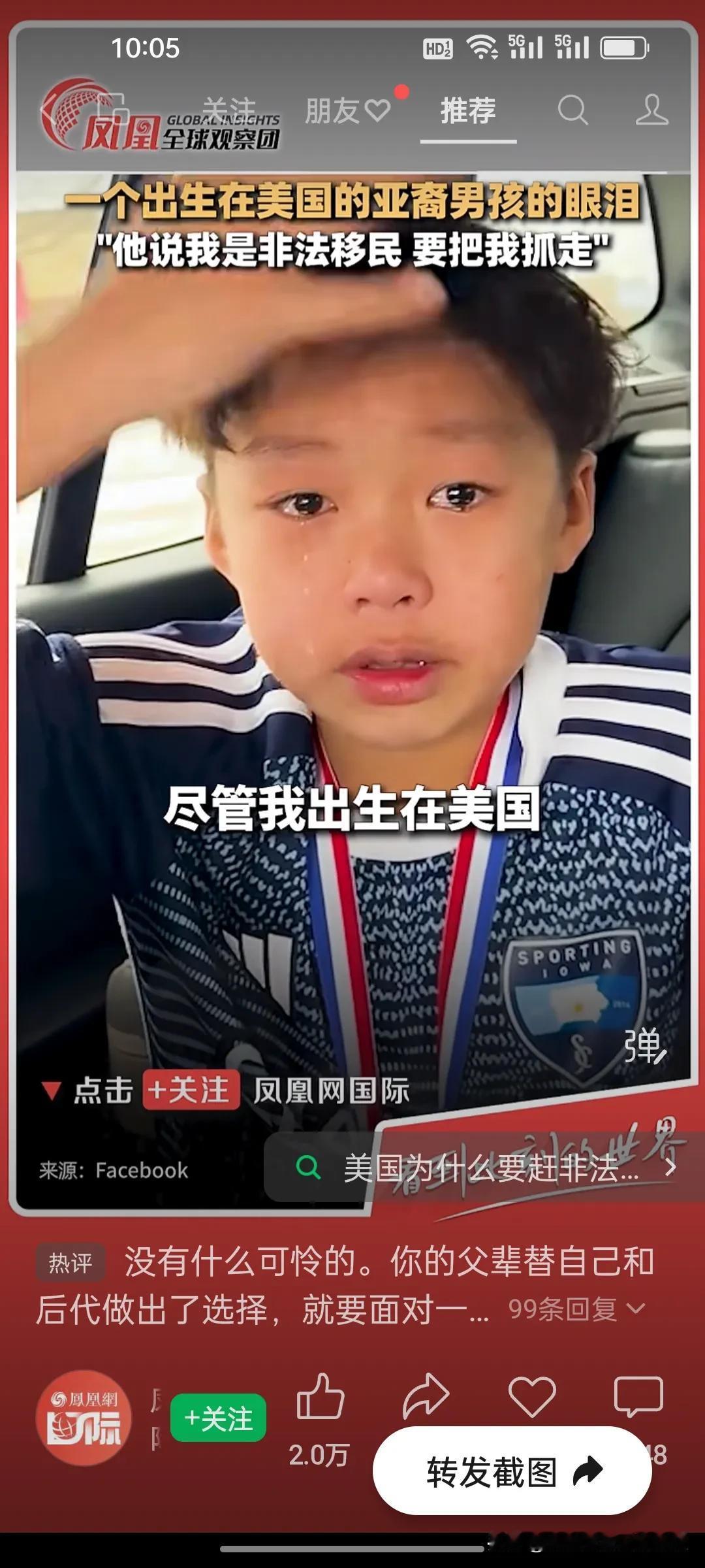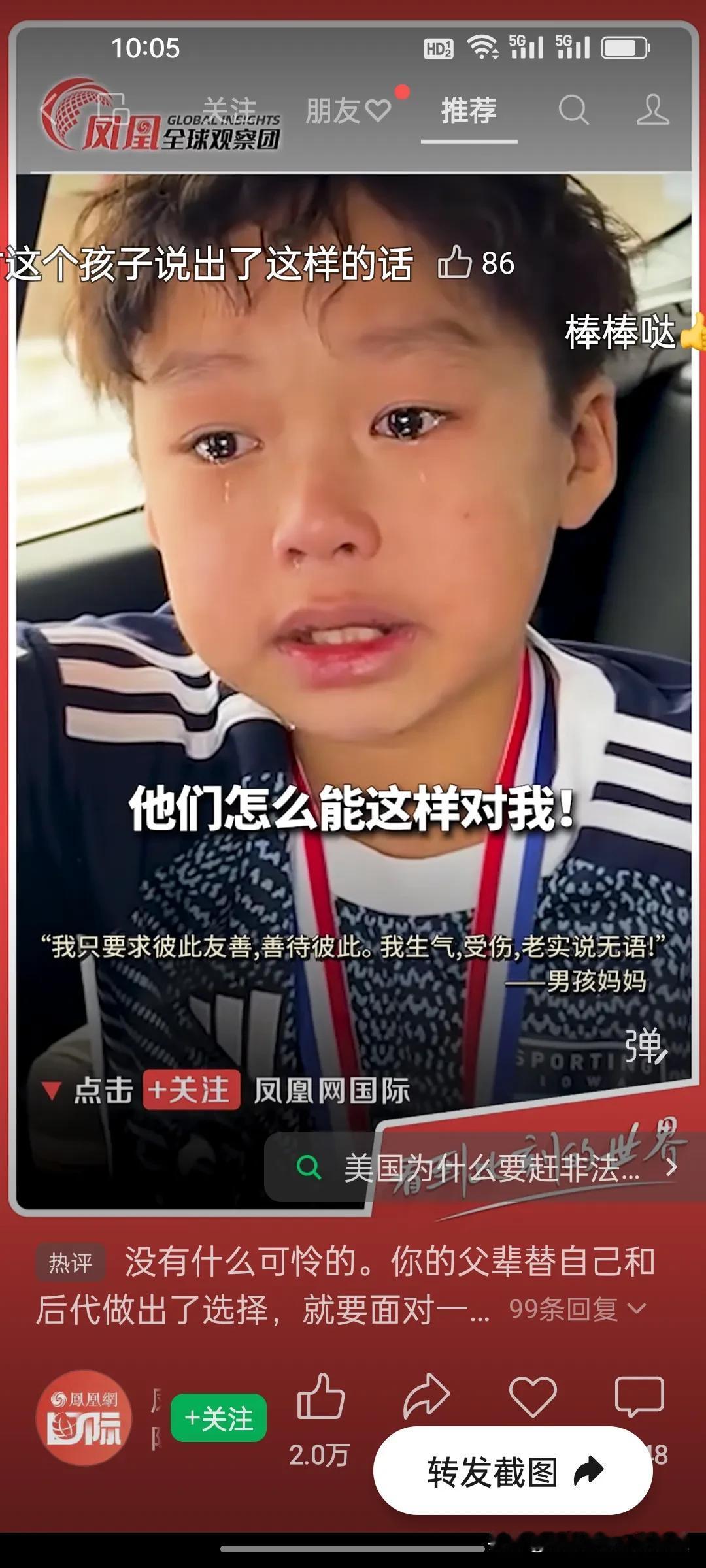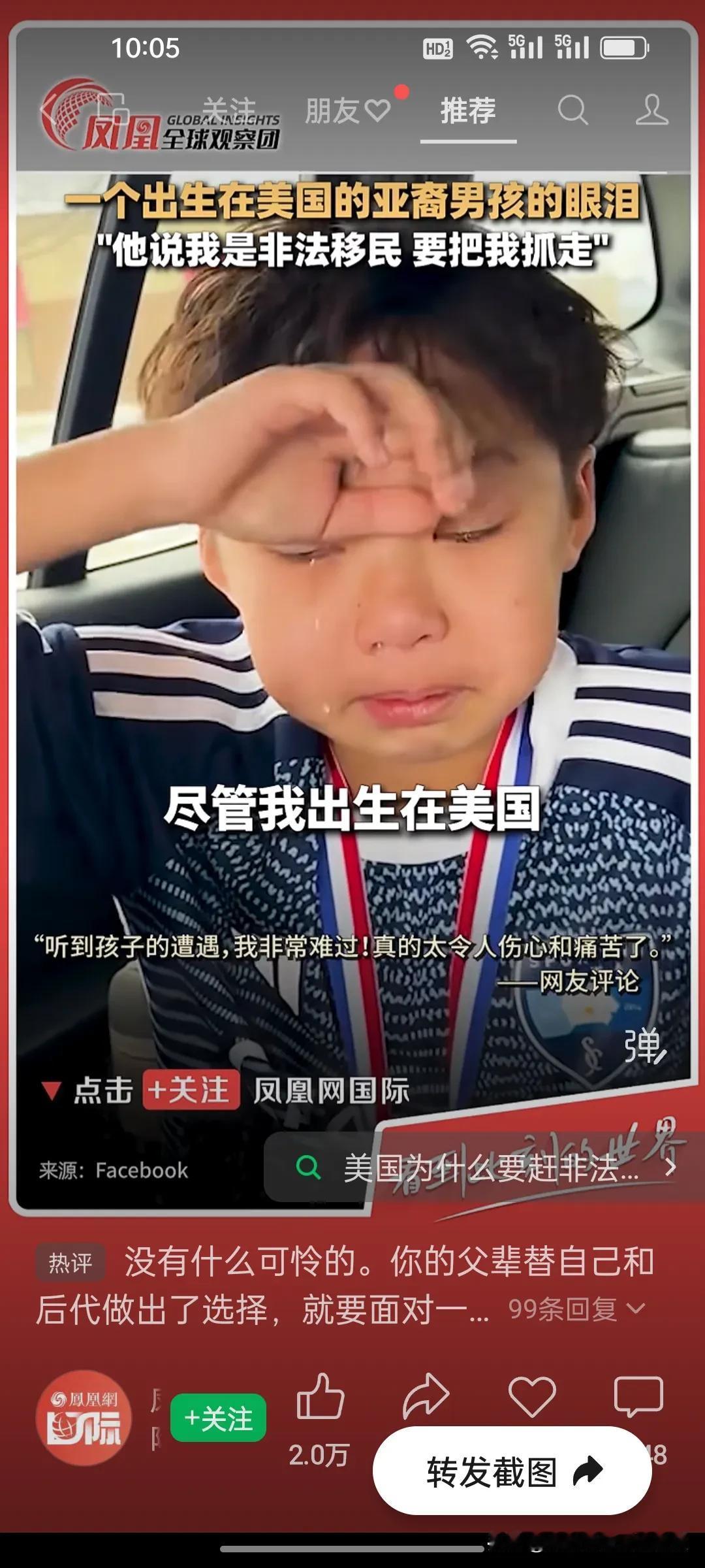 特朗普政府驱赶非法移民的行径对美国的教育已经产生很大的影响。 特朗普政府之前强烈批评拜登政府时期的多元性别的政策摧毁美国教育,但是特朗普政府对于非法移民的政策已经深深刺痛了非欧美长相的孩子。 根据凤凰网报道,一位缅甸裔美国男孩在足球比赛时被作为守门员的另一个孩子羞辱,说他是非法移民,恐吓并辱骂他,说美国总统会抓他并送回到原来住的地方,这个男孩哭着对着镜头说,他想不通为什么要这么对他,他出生在美国。 特朗普的移民政策,实质是煽动种族对立、制造排外恐慌。出生在美国的少数族裔孩子遭羞辱恐吓,便是恶果。它撕裂社会、践踏平等,让偏见扎根校园,毁掉孩子纯真,背弃多元价值,尽显其“美国优先”政策的狭隘与自私,终将加剧美国分裂。