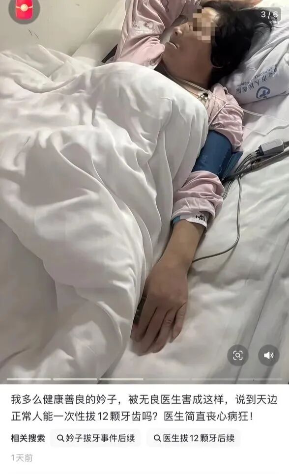 近日,山西曲沃一位网友发帖称,自己的舅妈去当地一家口腔诊所看牙,医生一次性把其上方12颗牙拔光,引发心梗、休克。