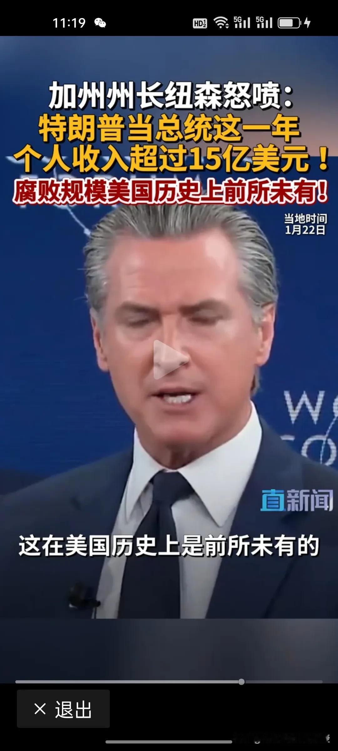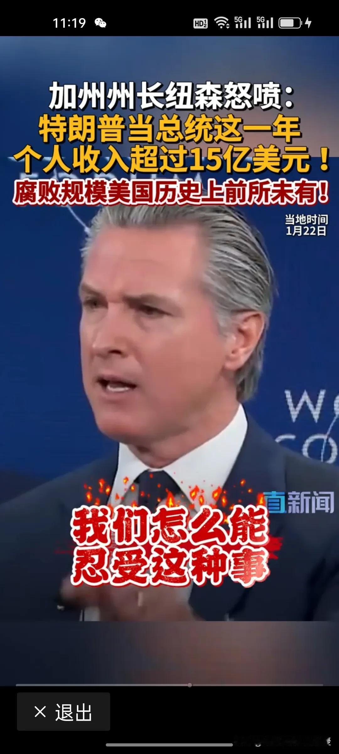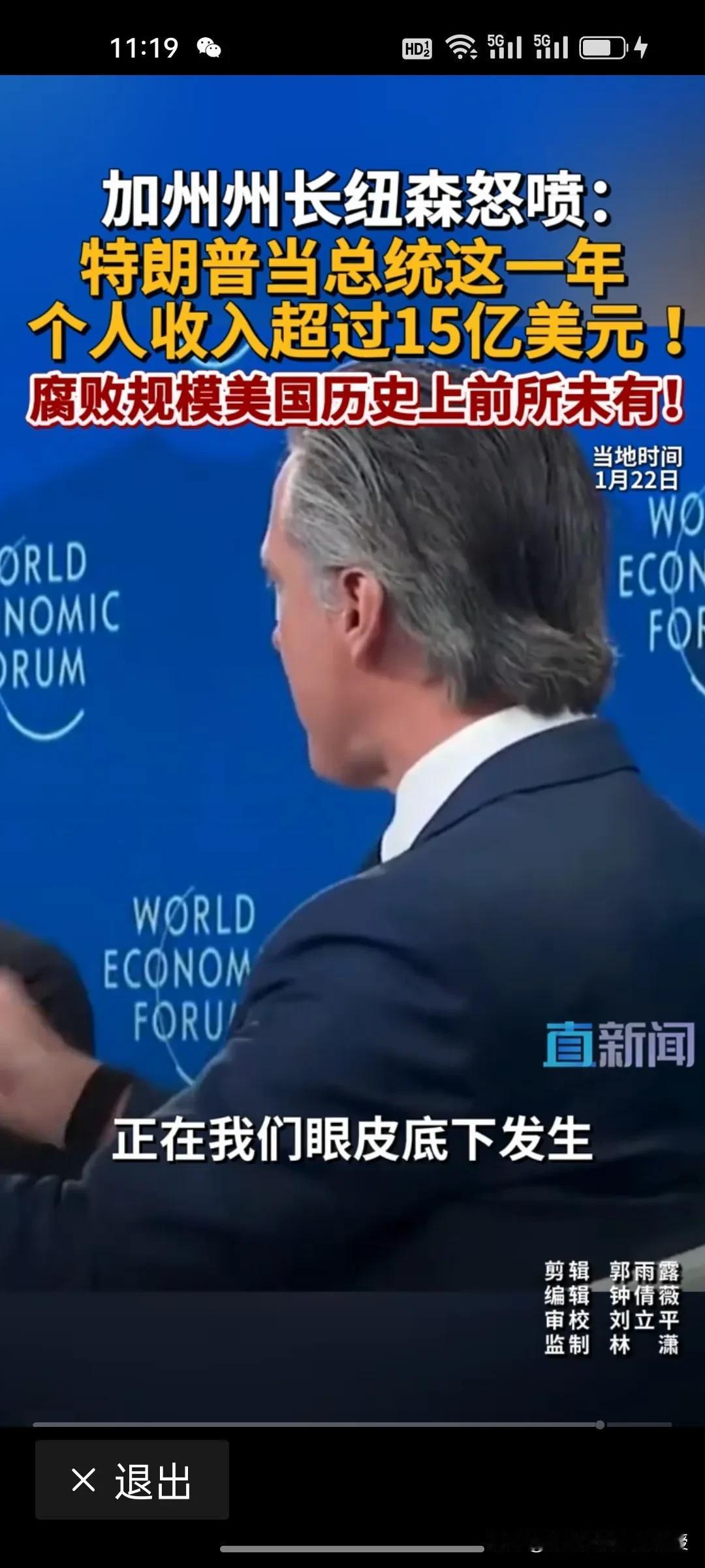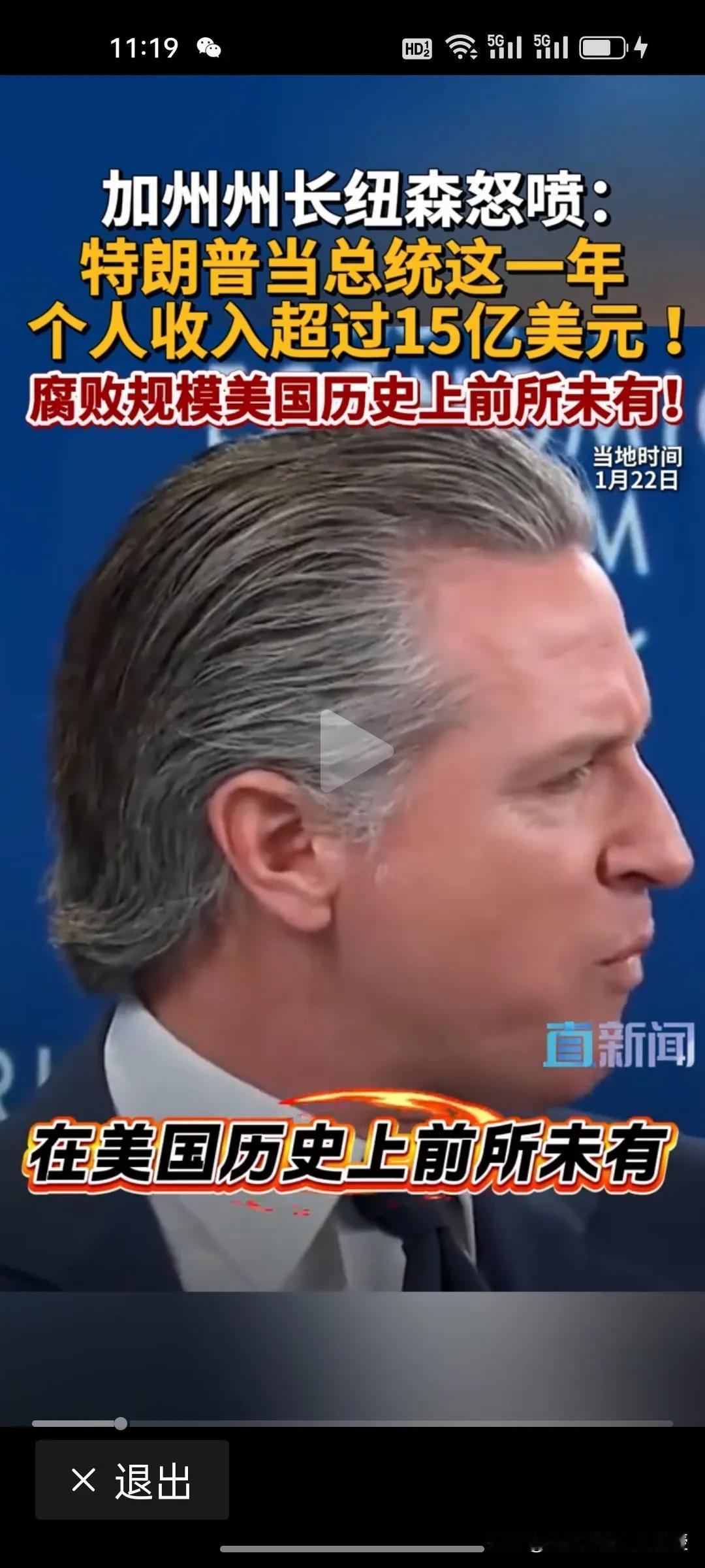 加州州长纽森这是一点面子都不给特朗普啊!爆料特朗普一年收入超过15亿美元,让世人瞠目结舌! 首先就是利用关税政策反复收割资本市场,“画k线”让其女婿等人赚得盆满钵满,具体是多少个亿不得而知,另一块收入就是加密货币,还跟华人首富赵长鹏合作上了,全家都是币圈忠实拥趸,还有就是主业房地产,去年拿了越南土地开发房地产业务,及特朗普周边产品,香水,手表等等,凡是能赚钱的行业,特朗普家族一个都不会落下。 很多网友测算,特朗普家族收入一年最少20亿美元,纽森说的少了。不过纽森说“特朗普的腐败规模在美国历史上前所未有”。特朗普家族这样肆意敛财,真的就不怕三年之后的“秋后算账”吗?他应该知道,总统的豁免权也是有边界的。