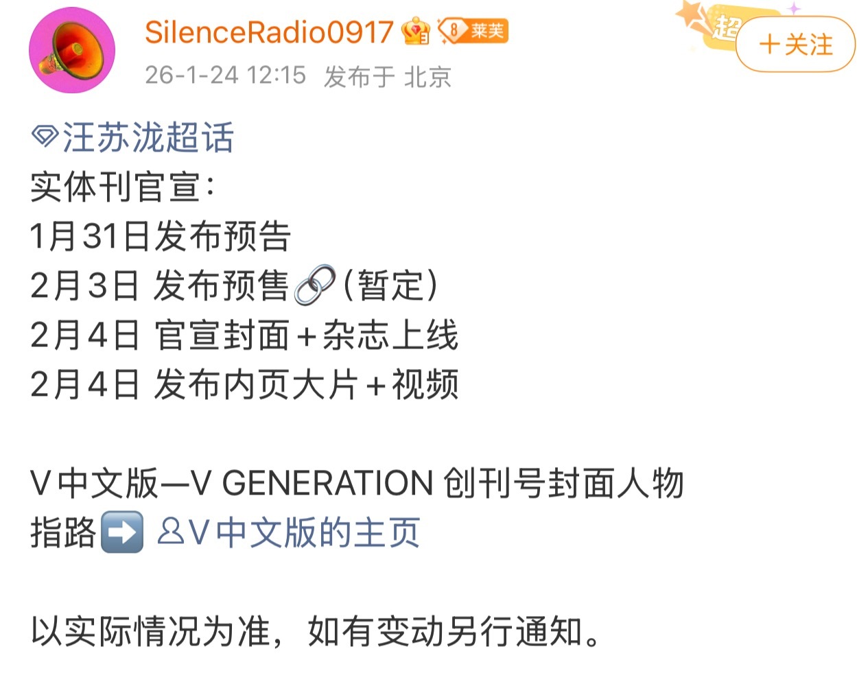 汪苏泷实体刊官宣 汪苏泷对接发布实体刊官宣预热:V中文版—V GENERATION 创刊号封面人物前几天刚宣了MLB和HBN的品牌代言人,又有新杂志了,这个时尚资源和商务价值在歌手圈已经名列前茅了。汪苏泷实体刊官宣预热汪苏泷