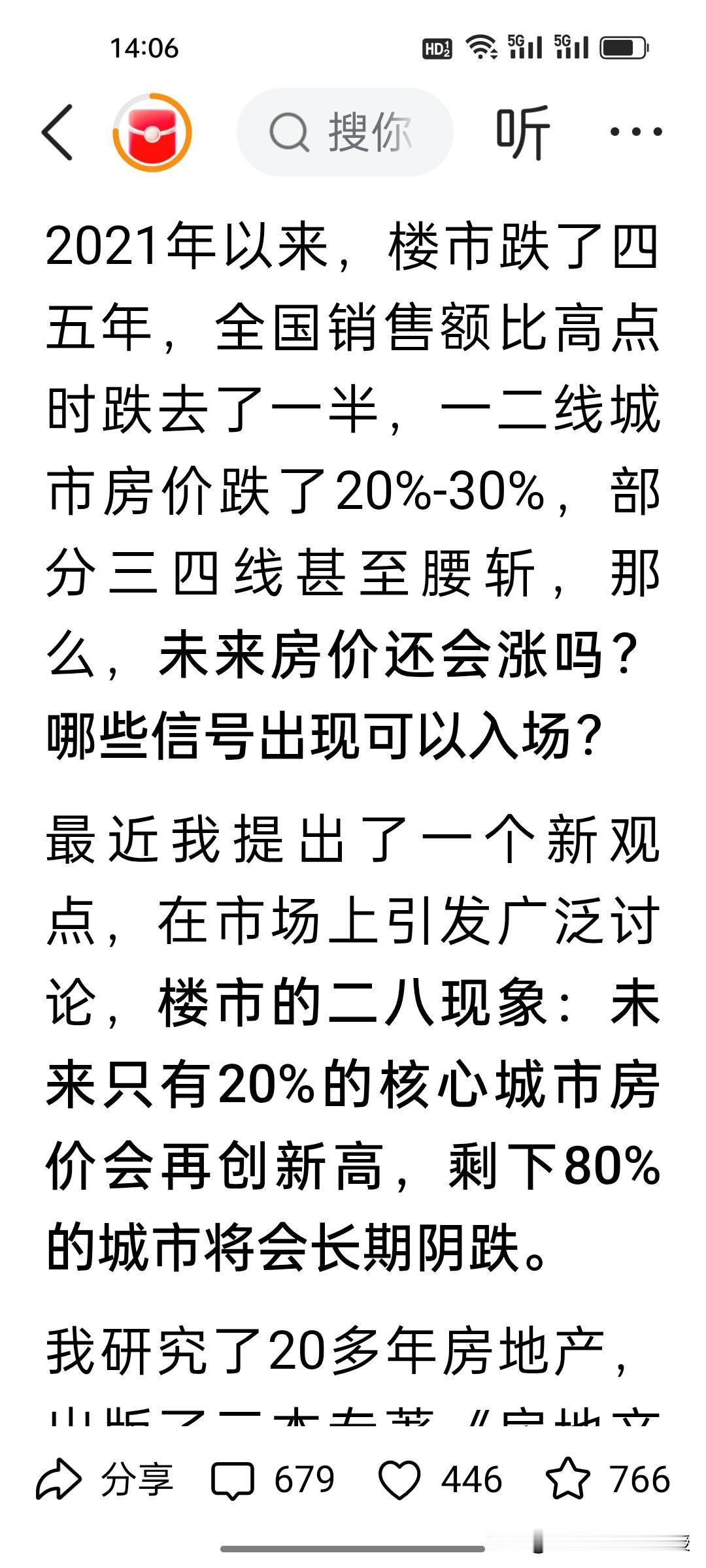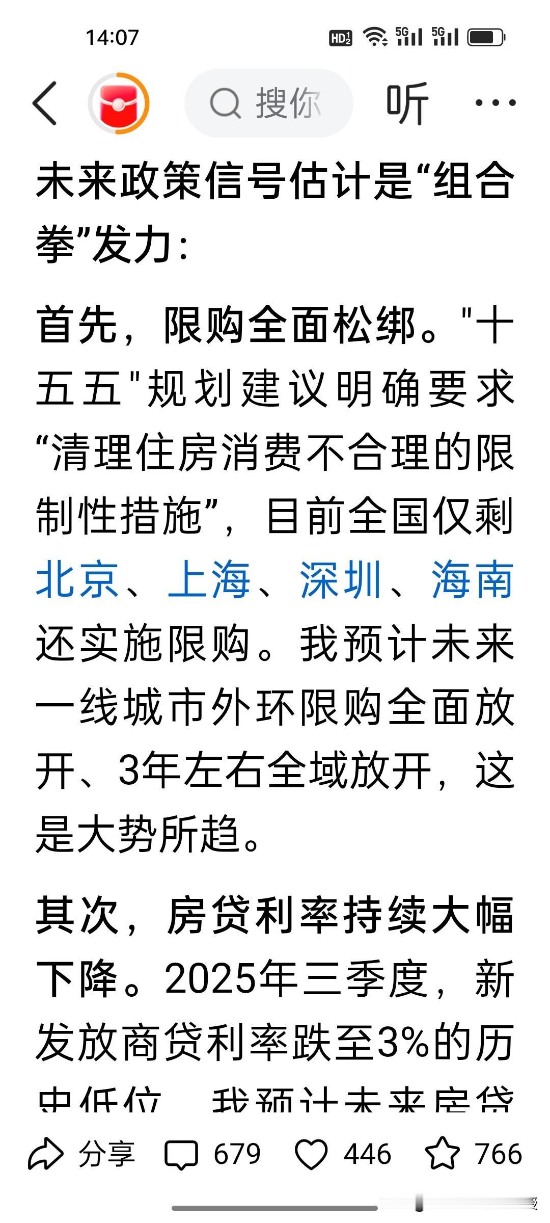 任泽平最新研判楼市,点破房价上涨信号的这几个核心观点必看!与前天看到的马光远观点不谋而合! 任泽平的主要观点是: 第一,核心城市2-3年将迎房价筑底,而多数三四线城市或长期阴跌。 第二,未来政策将全面回归市场化,限购逐步放开,还有利率下调等组合拳发力。 第三,经济拐点显现,PMI新订单等领先指标回升成支撑; 第四,核心城市供求逆转,人口流入、供地减少推动房价企稳。 第五,楼市二八分化明显,仅20%核心城市有上涨空间。 近期,马光远和任泽平这两位专家的分析直击市场核心,今年国家关于地产政策的落地节奏,或将成为楼市复苏关键拐点!