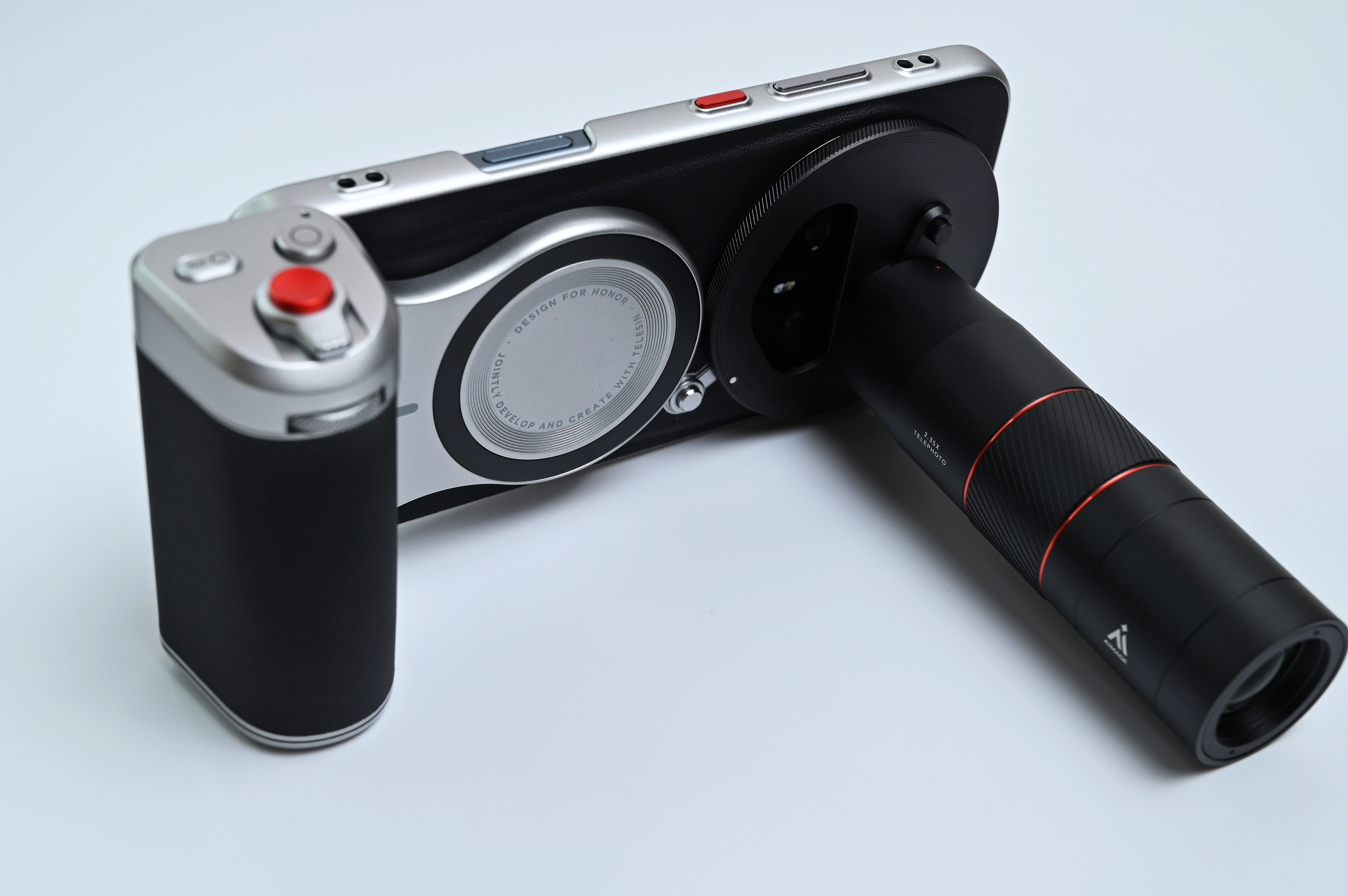 荣耀发布会这套荣耀Magic8 RSR保时捷设计的专业影像套装,和荣耀Magic8 Pro的那一套,除了手机壳的镜头开槽不同之外,其它都是一样的,外挂增距镜用过之后会发现,真的太太太牛了。等回头去看演唱会或者看球赛时,就是我大显身手的时刻了,大家就请好吧