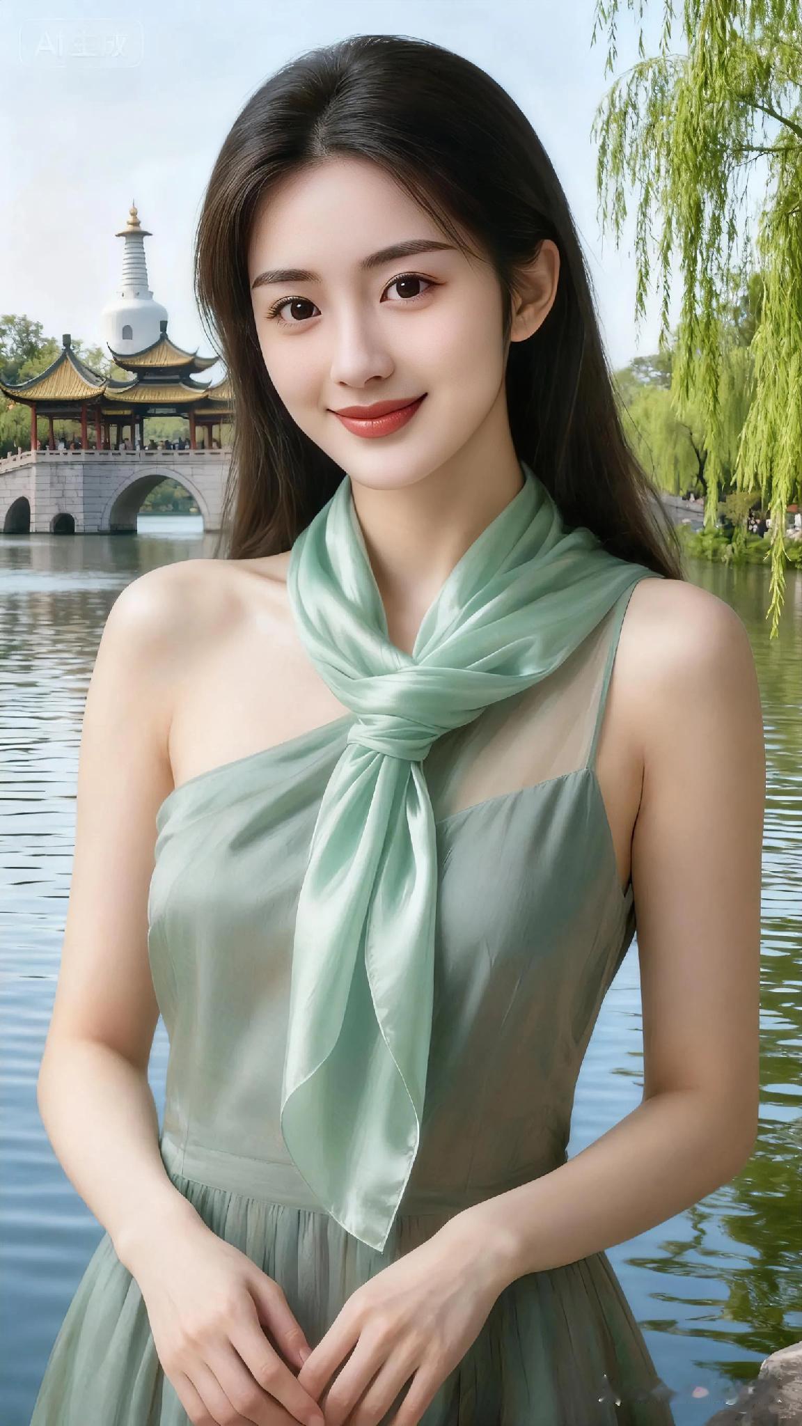 刘浩存甜美穿搭写真:瞻碧轻漪漾,酿绿影春光。刘浩存