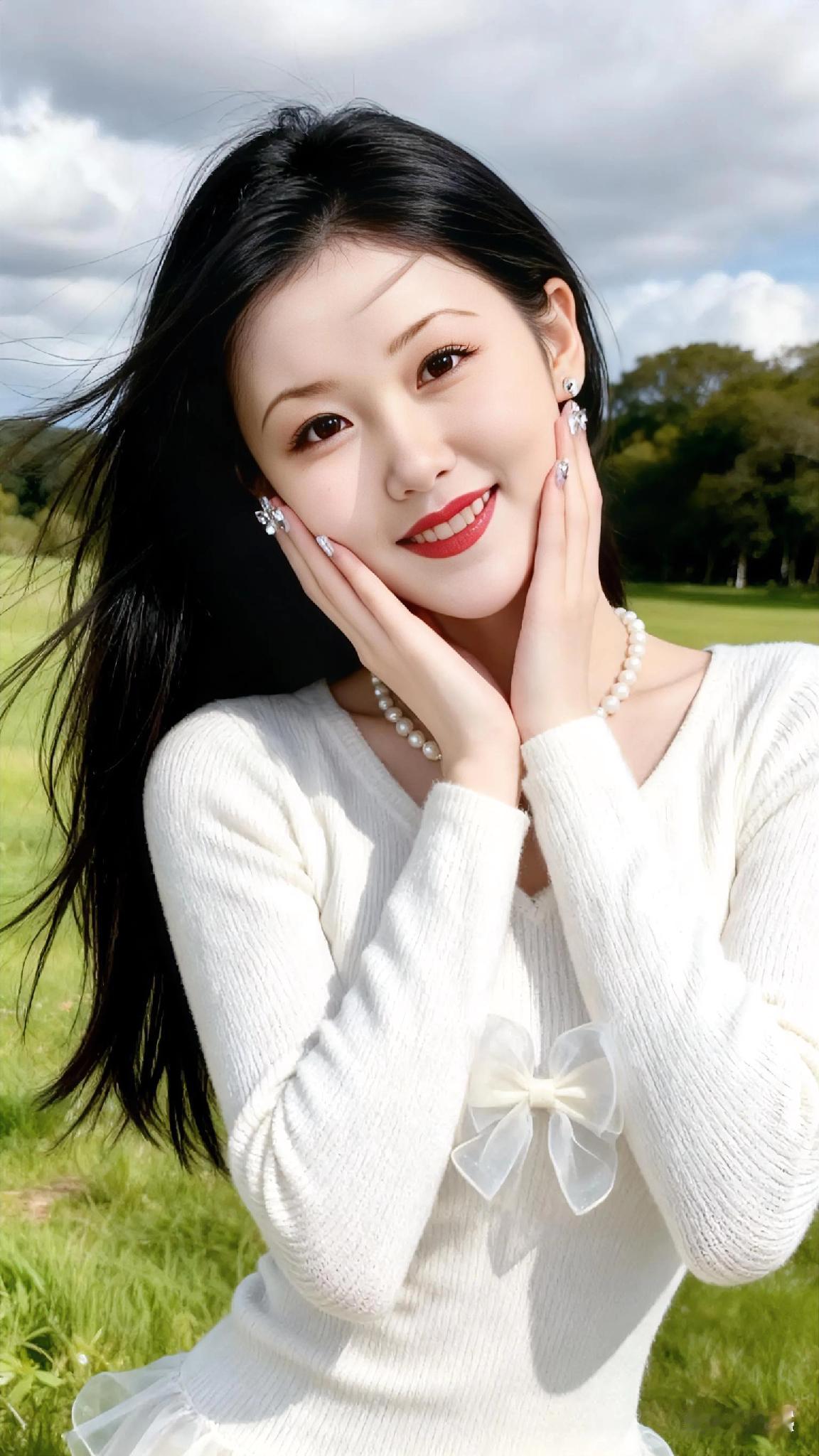 真人写真,20岁佳人天姿国色,清丽脱俗又娇俏甜美,眼明眉弯睫长琼鼻挺翘,雪肤樱唇