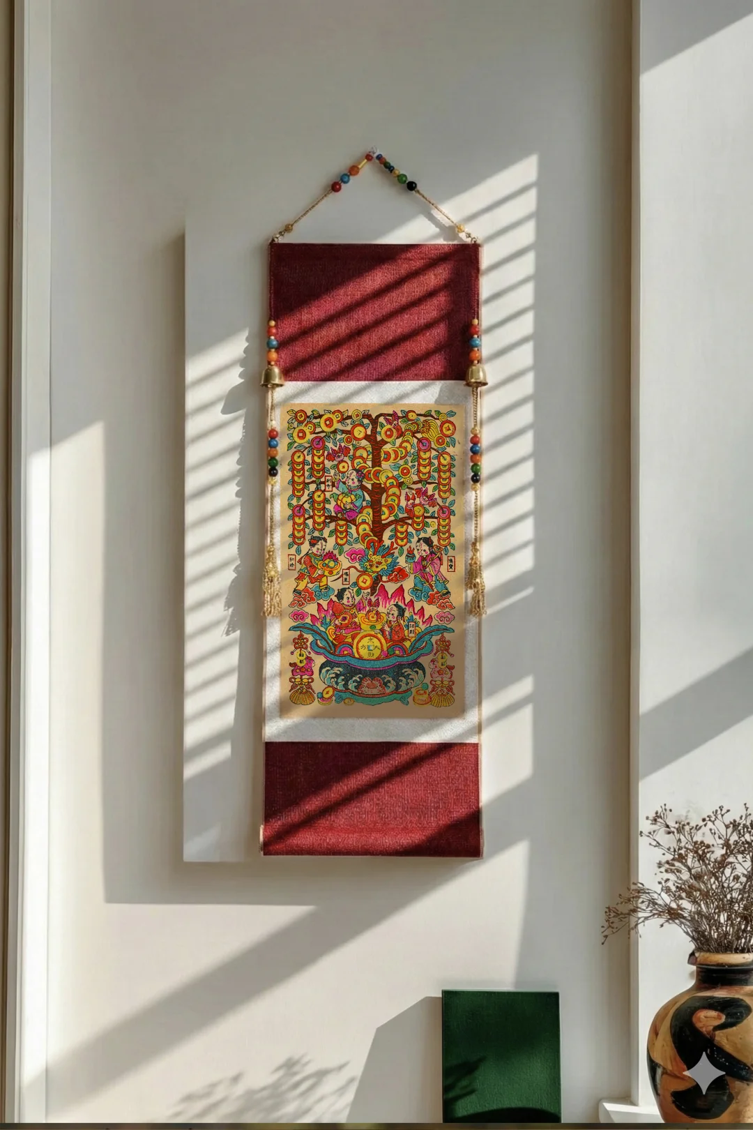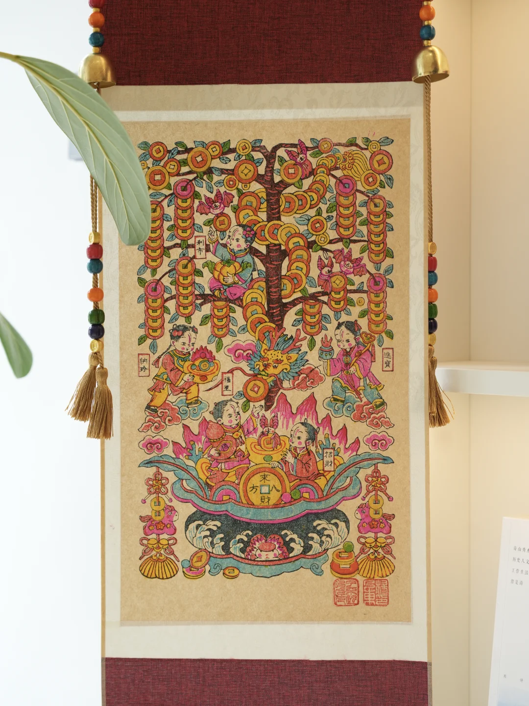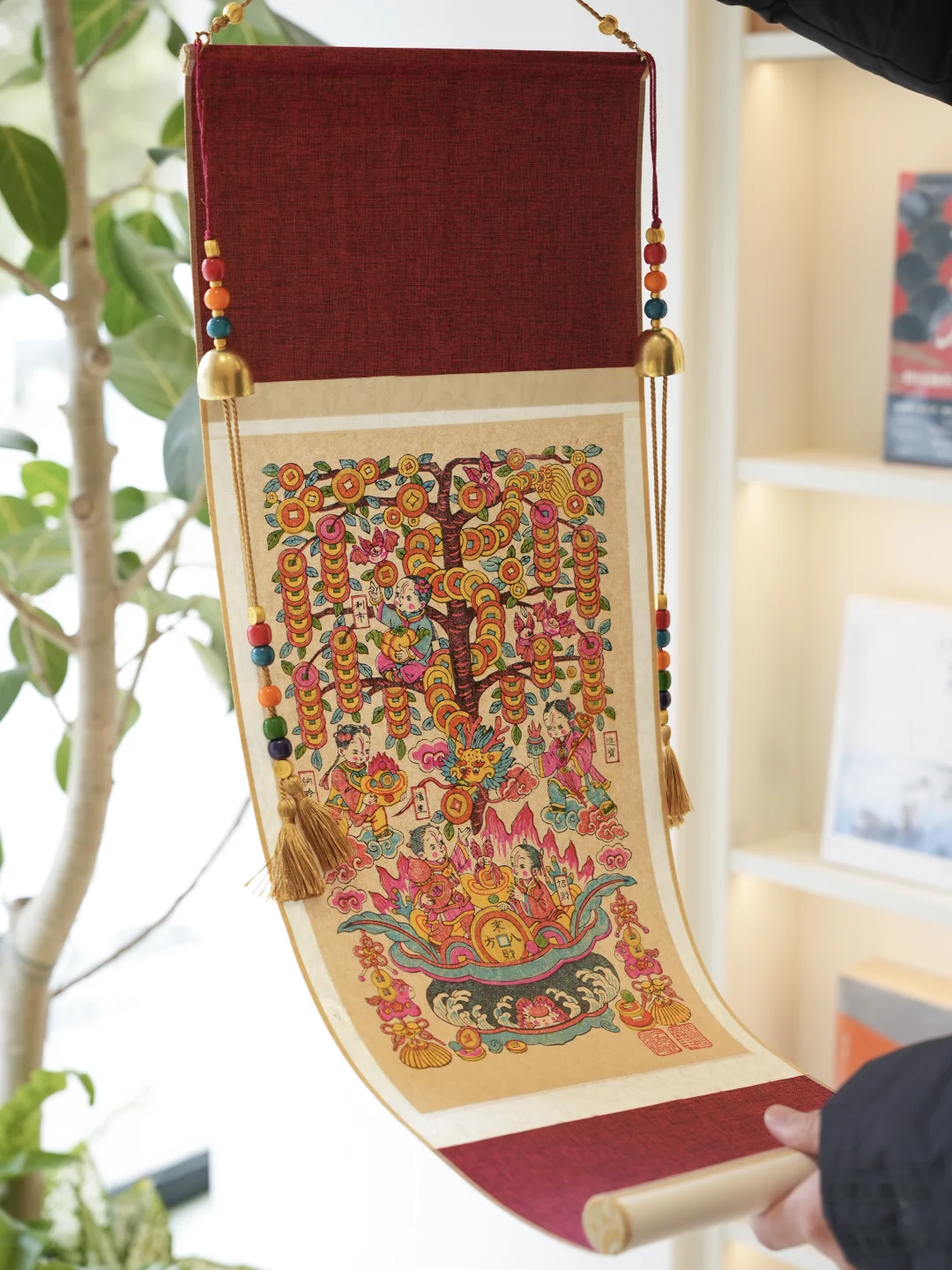 最推荐的是玄关 卷轴比例是竖向的 一进门视线刚好会被拉住 画面很满但不会压空间 不需要再额外搭配红色装饰 家里的新年氛围就已经出来了 挂在客厅也很合适 尤其是背景墙或侧墙 它本身颜色够丰富细节也多 远看有整体气势 近看有细节 作为一整面空间里的装饰主角完全撑得住 如果家里有书房或工作区 也可以挂在那边 比普通装饰画更有东方感 新年之后继续挂着也不会突兀 这周预售到货一批~