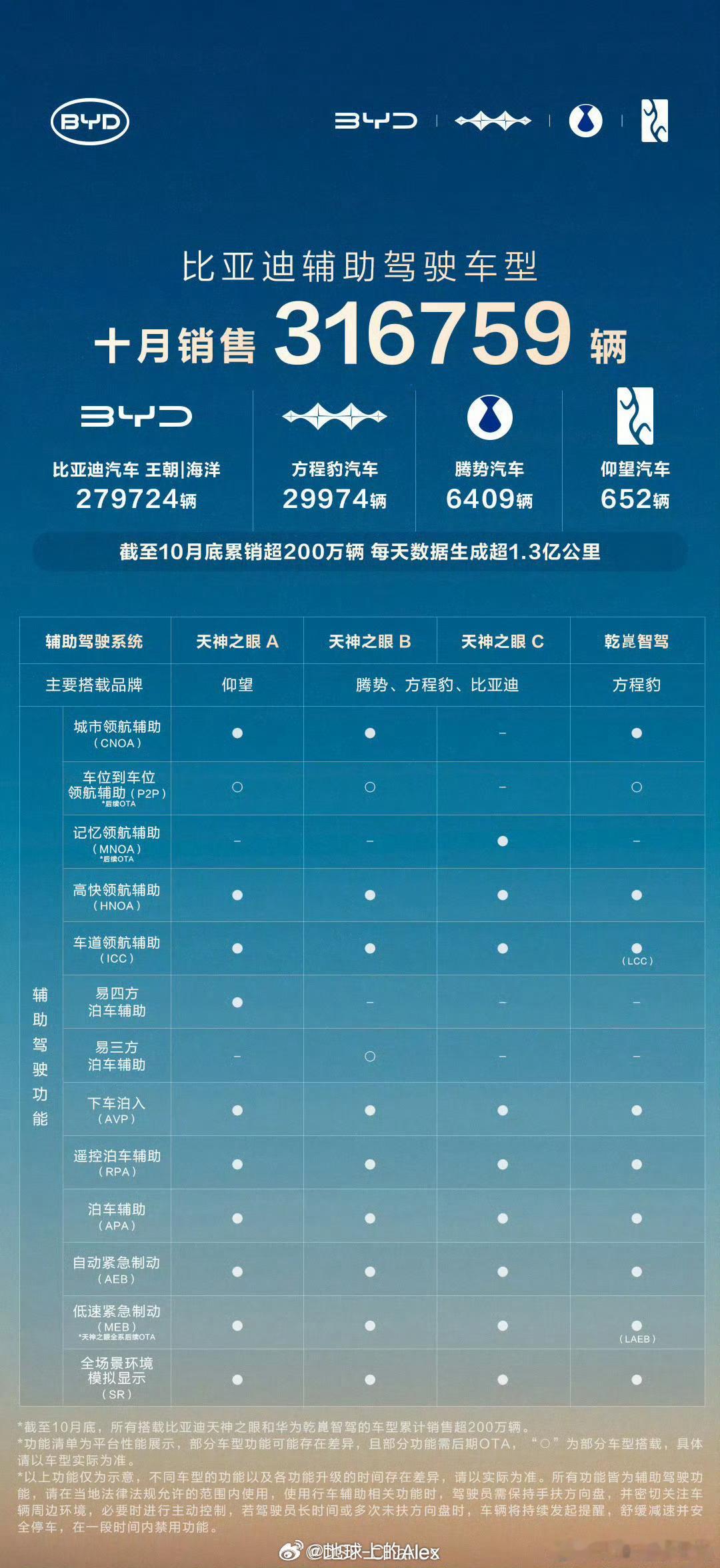 比亚迪的天神之眼,应该说是所有国产车企里头最容易做量的凭借着比亚迪的供应链管理能力,再加上最关键的杀手锏—价格,那能够普及辅助驾驶的重任,就给比亚迪没错了从天神之眼装配以来,现在拥有辅助驾驶的比亚迪已经有256万辆了这个数据量,可以说是可想而知的恐怖所以比亚迪能够在辅助驾驶进步如此迅速,跟这个保有量不无关系最重要的是,现在比亚迪的天神之眼车型持续热销,单就12月,卖出去19万辆存量恐怖+增量恐怖,比亚迪还有对手吗过几天,我也整个带天神之眼的车感受一下,比亚迪到底有多么牛批