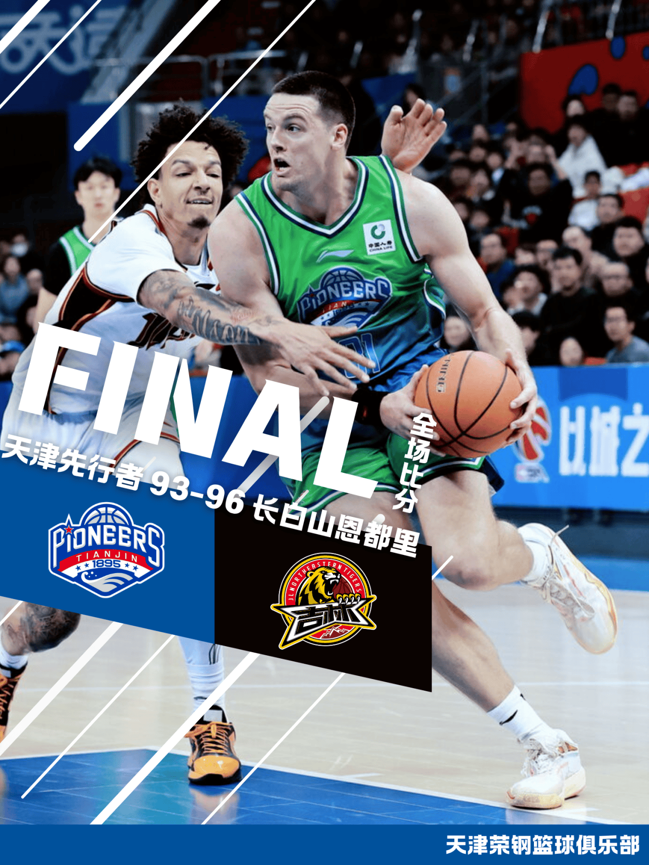 虎扑01月25日讯据天津男篮发文,1月24日晚,2025-2026赛季CBA常规赛第19轮,天津先行者主场迎战长白山恩都里。比赛中,先行者外线手感迟迟未能打开,而对手开局就凭借连续的3分攻势建立起领先优势。末节决战,詹姆斯挺身而出率队发起强势反击,一度将分差从两位数迫近至仅差2分,但最后时刻先行者遗憾未能完成逆转,最终93-96惜败长白山恩都里。