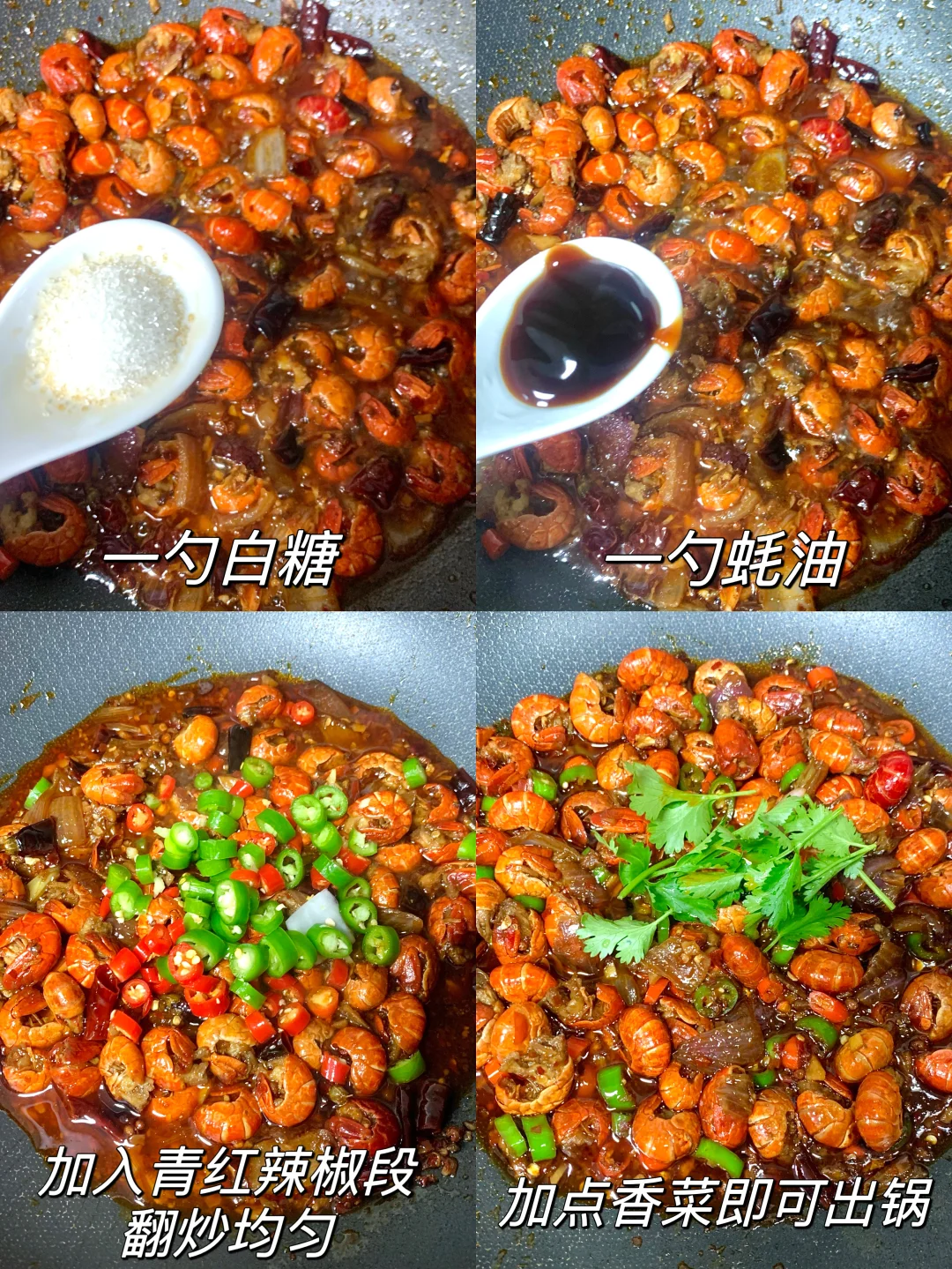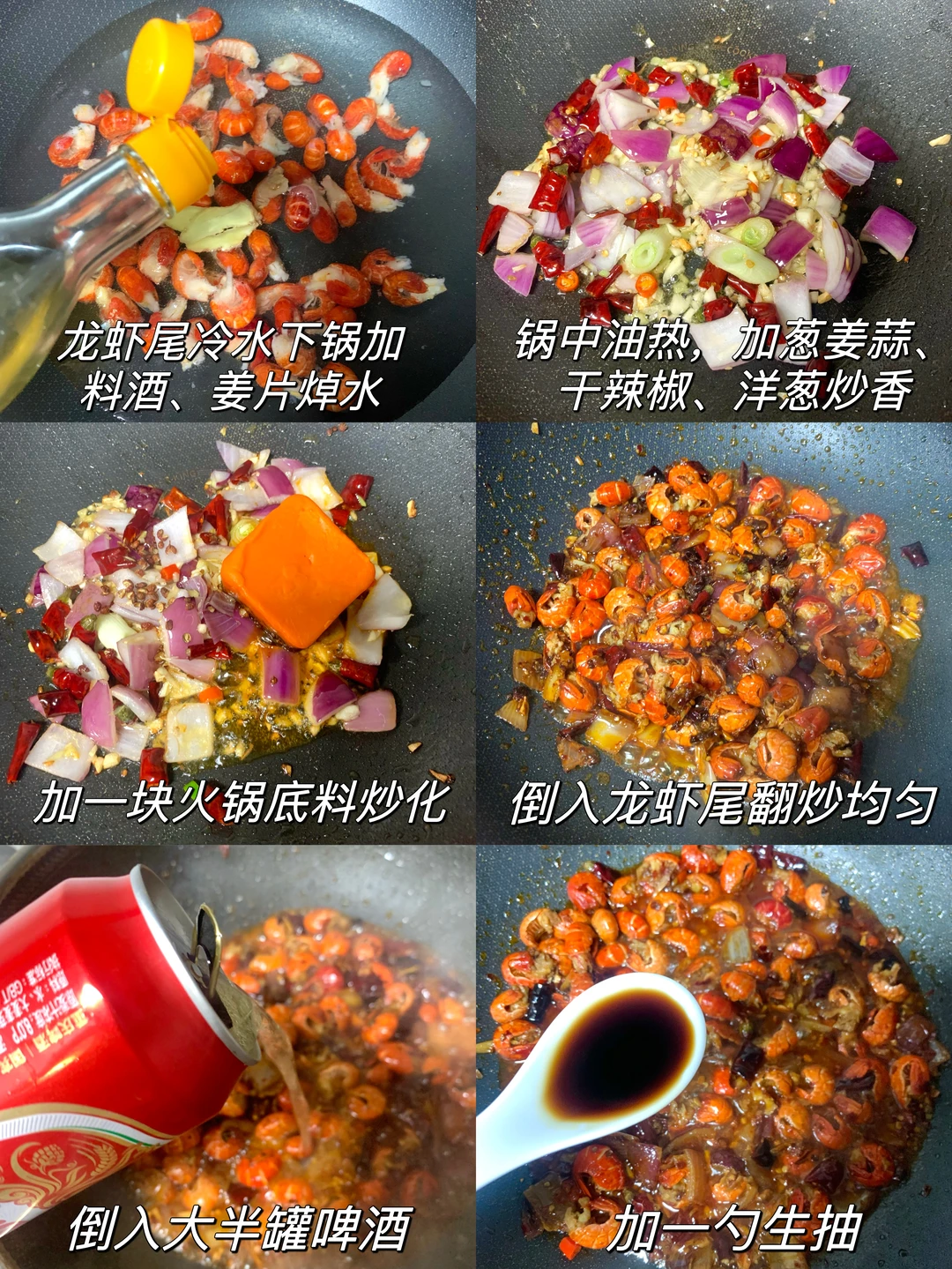 想吃小龙虾又怕麻烦的姐妹一定要试试这道麻辣虾尾‼️超入味超好吃,一盘都不够我炫🤣做法很简单 食材:龙虾尾、火锅底料、罐装啤酒、葱姜蒜、洋葱、干辣椒、线椒、小米辣 做法: 一、龙虾尾冷水下锅加姜片料酒焯水捞出,起锅烧油加葱姜蒜、干辣椒、花椒、洋葱炒香,加入一块火锅底料炒化,倒入龙虾尾翻炒均匀 二、加入大半罐啤酒焖煮10分钟,再加一勺生抽、一勺白糖、一勺耗油,加入青红辣椒段翻炒均匀,最后撒上香菜即可 [彩虹R][彩虹R]答应我!一定要试试!这么做味道真的不输饭店!