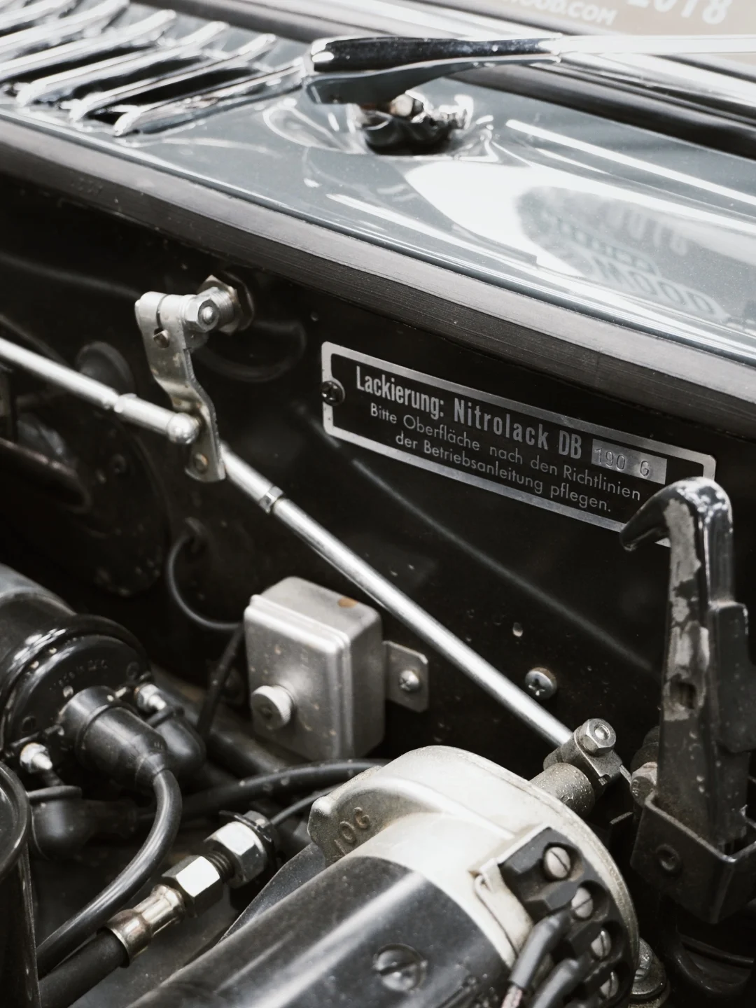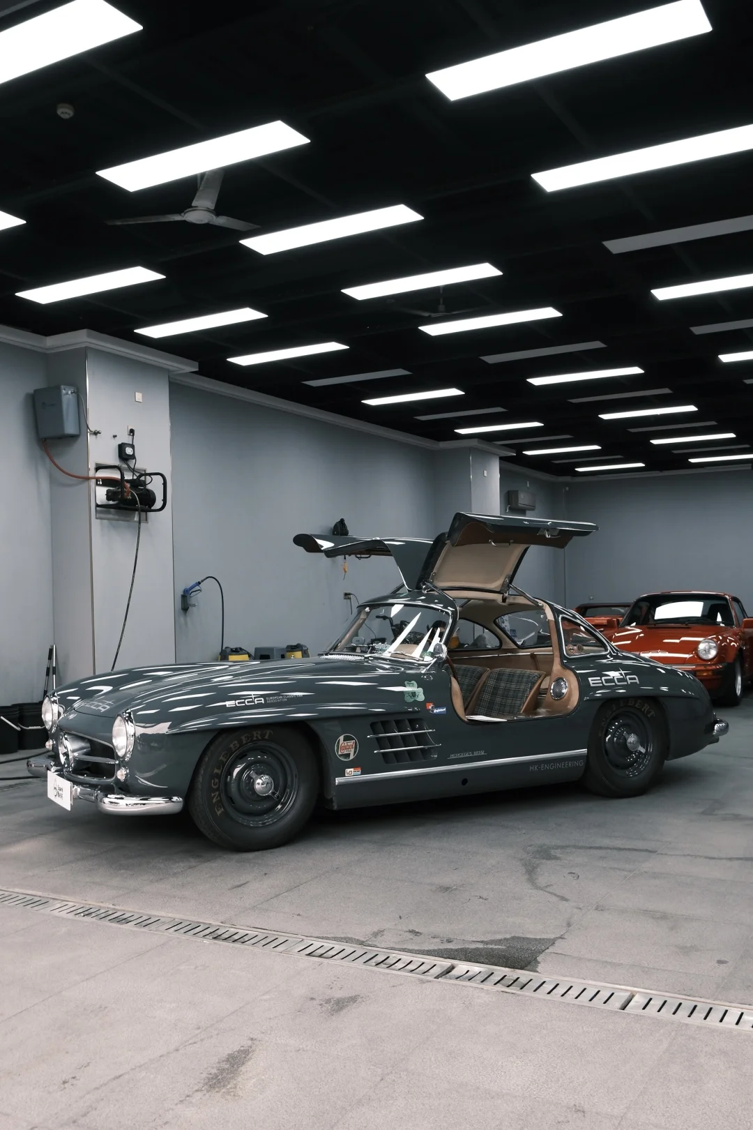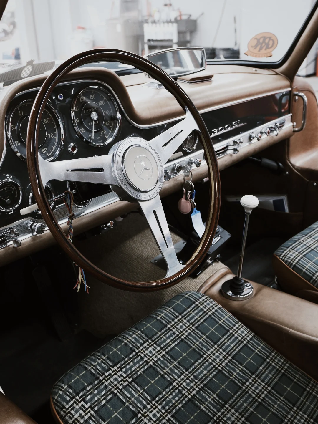 论50年代跑车设计,经典代表当属捷豹D-type/XKSS与奔驰300SL。此次体验300SL,忍不住拿自家E-Type来对比。 300SL的标志性鸥翼门辨识度拉满,轻量化管状车架造就高侧梁与宽门槛,诞生了这一标志性设计,上下车甚至要拆卸方向盘。驾驶舱紧凑直立,神似飞机座舱,满是严谨精密。反观E-Type,坐入姿态更低更顺滑,人如同滑入低矮座舱,双腿前伸,运动感直接拉满。 内饰上,300SL仪表板侧重实用,表盘排布紧凑,速度表与转速表居中,其余辅助仪表全在眼前,尽显工程风格。E-Type则将两大圆形主表盘置于驾驶者正前方,其余小表盘与开关错落排布中控,自带英式运动格调。 点火那瞬间… 300SL直列六缸燃油喷射发动机,启动声清脆平稳,是机械的精准克制;E-Type的XK发动机则截然不同,点火即迸发浑厚低吼,怠速声深沉有情,满是浪漫气息。 此番近距离体验这台梦中情车,还是感受独特。感谢和spark