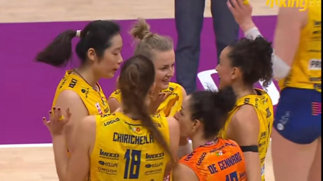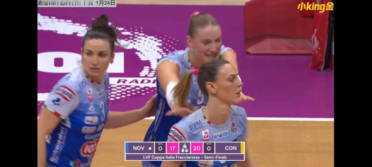 朱婷首发出战,科内3-0横扫诺瓦拉,顺利挺进女排意大利杯决赛! 北京时间1月24日22点30分,女排意大利杯半决赛第一场比赛打响,由科内利亚诺对阵诺瓦拉。 本赛季,两队交手三次,2025年9月份的意甲联赛季前热身赛——马耶杯半决赛中,科内1-3负于诺瓦拉,但在意甲联赛常规赛中,科内以3-0和3-1双杀诺瓦拉。 本场比赛,科内全主力最强阵容首发。诺瓦拉队内大家熟悉的日本女排国家队队长石川真佑前两局后排替补发球出场,第三局首发。 第一局,朱婷被对手全场追发(一传手感超级好),进攻机会不多,但最关键的局点一锤定音,帮助科内25-23拿下首局。 第二局,科内以25-20再下一城。在比分优势较大的情况下,局末朱婷下场休息。 第三局,科内一鼓作气,以25-21结束比赛。 考虑到朱婷的体力问题,第一局局中被尼卡换下休息三轮,第二局和第三局被尼卡和自由人两次换下休息。不得不佩服桑塔雷利,把朱婷的作用用到极致!朱婷也不负众望,接了全队最多的一传,并且17扣7中1拦1发,得到9分。 北京时间明天22点整,科内将与斯坎迪奇和基耶里的胜者争夺意大利杯的冠军。朱婷 朱婷意甲