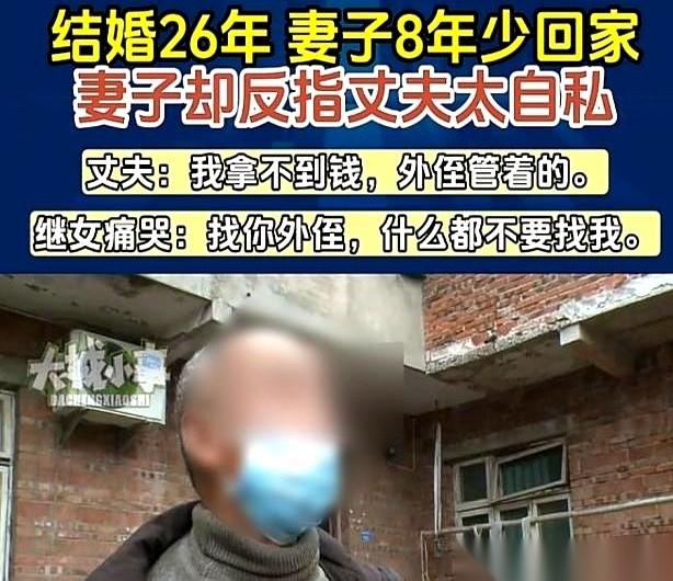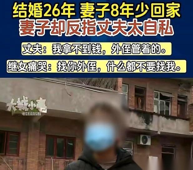 一个月给你300块钱生活费,水电人情女儿学费全包。 胳膊疼得抬不起来想去看病,他说:行啊,看完拿单子回来给我报销。 你猜这是啥? 不是旧社会的地主和长工,是重庆一对结婚26年的老两口。 男的觉得自己委屈得像个圣人。 我帮你把3岁的拖油瓶拉扯大,养了26年,天大的恩情啊!你怎么能走?你怎么敢走? 于是老太太一走8年,头也不回。 他急了,找调解员,想让老婆回来伺候晚年。 结果把陈芝麻烂谷子一倒出来,所有人都沉默了。 300块,在今天能干嘛?可能不够你加一箱油。 但在当年,一个女人就靠这点钱,撑着一个家。不够怎么办?大冬天跳下河摸螺蛳,回家还得喂猪,拿命去换钱。 这些苦,那个男人看到了吗? 他没看到。他只记得他养了别人的女儿,他只觉得全天下都欠他的。 最寒心的,就是那张“发票”。 我把你当老婆,你把我当会计。我跟你谈感情,你跟我走流程。 那一刻,什么26年的情分,都喂了狗了。 所以老太太说要离,我一点都不奇怪。 在女儿家,带带外孙,累是累点,但活得像个人。腰杆是直的,手心是向下的,不用为了几块钱看人脸色。 可笑的是,男方亲戚还跳出来,说人家母女是图他钱。 真是奇了怪了。 老头子脑梗住院,端屎端尿半个多月的是谁?是这个“图钱”的继女。 你们这些“正牌”亲戚,当时在哪儿呢? 说白了,有些男人就是这样。 他把你对他的好,当成理所当然;把他自己的一点点付出,刻在功德碑上,恨不得让你天天跪拜。 婚姻不是算账,不是你养了我的娃,我就得给你当牛做马一辈子。 你连枕边人最基本的冷暖和尊严都给不了,还谈什么恩情? 散了,挺好。 这哪是过日子,这分明是渡劫。