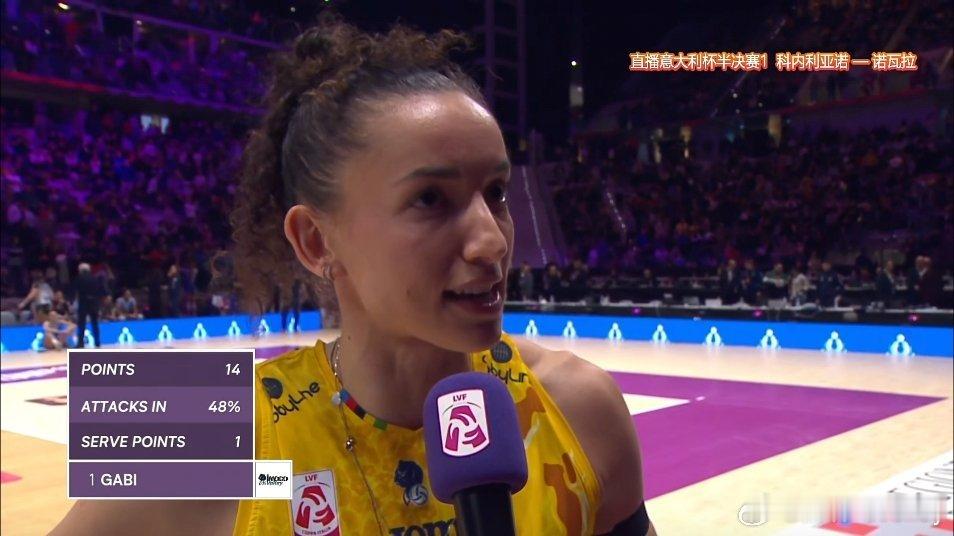 加比27扣13中3失误被拦1发14分,荣膺本场最佳。朱婷意大利女排联赛