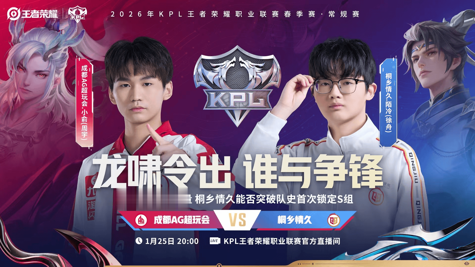 20:00成都AG超玩会vs桐乡情久(一组,成都)