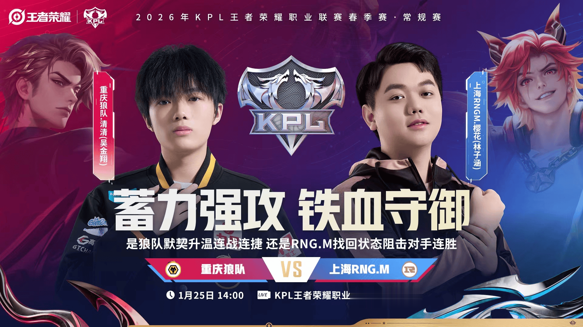 14:00重庆狼队vs上海RNG.M(二组,上海)