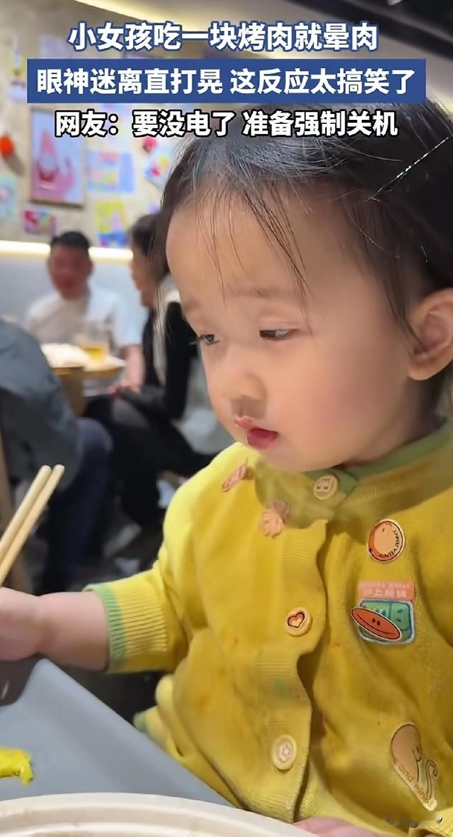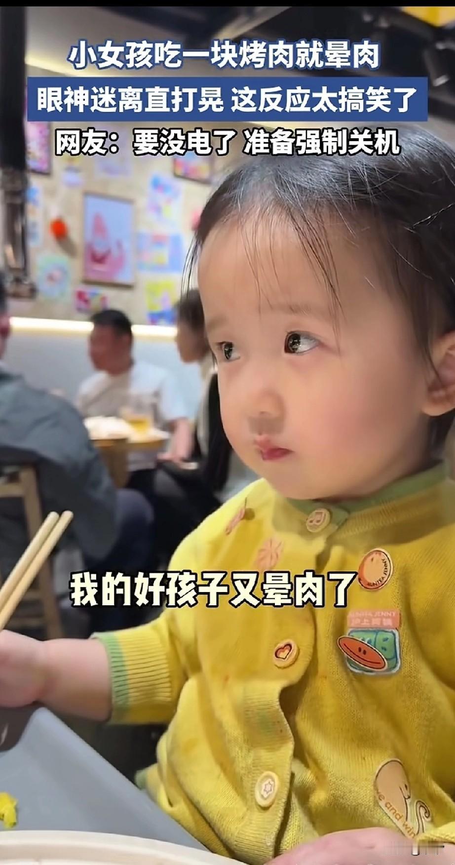 晕针晕血都见过,晕肉的还是第一次见,一父亲带女儿去吃烤肉! 孩子开心极了,正当父亲吃的津津有味的时候,看了一眼自己的女儿,她吃着美食,也是不哭不闹,还非常安静的吃东西! 不过一会便发现女儿有点不对,那就是吃肉的时候有点想晕的感觉,在确定不是女儿想睡觉,而是吃肉后的晕肉反应! 网友表示这不会是被香迷糊了吧!还有网友表示完没电了要强制关机!大家觉得有晕肉反应吗? 家有萌娃 带闺女吃烤肉
