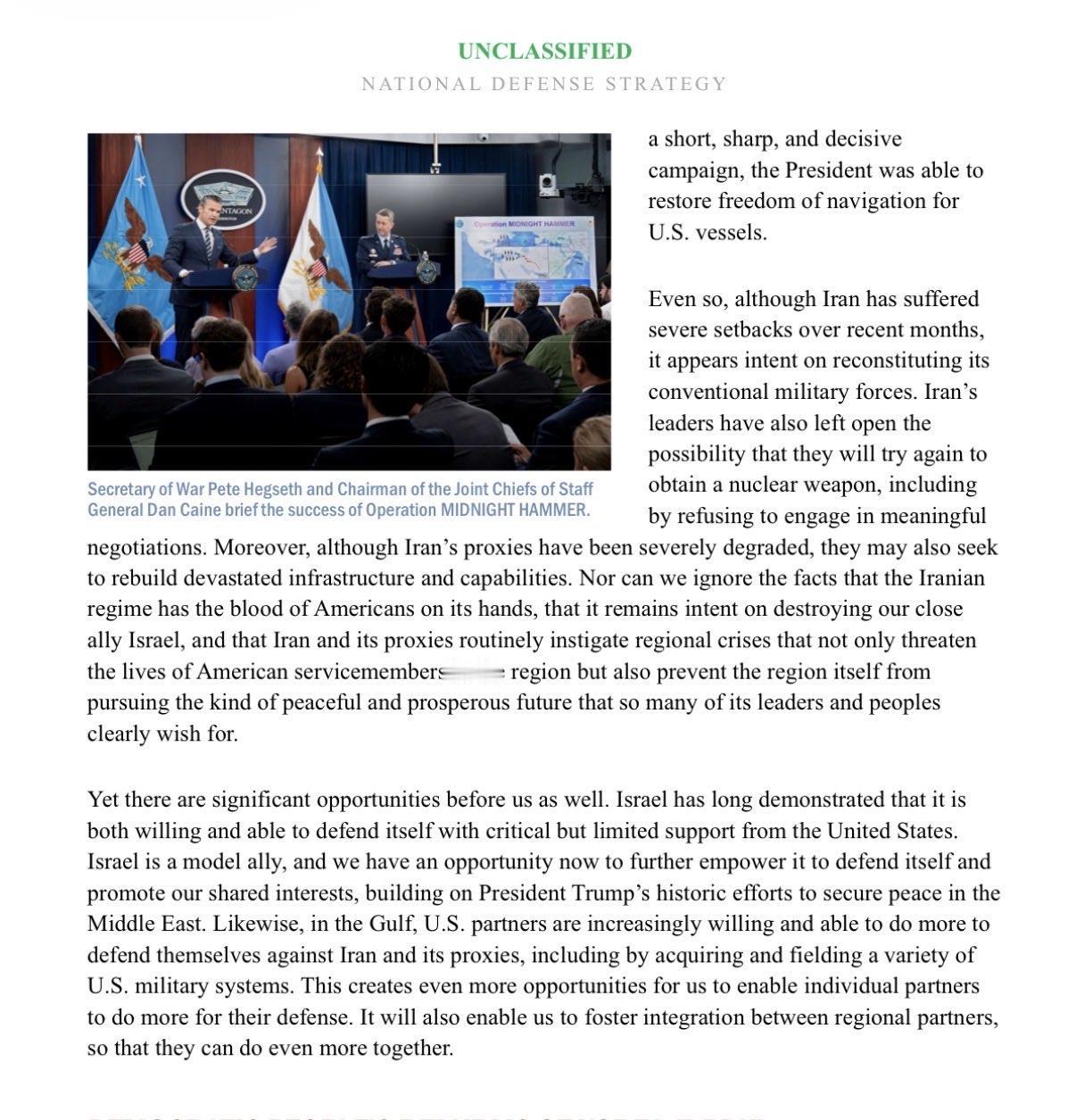 美国新的《2026 年国防战略》称赞以色列是“模范盟友”,并批评拜登政府“束缚”了以色列的手脚。 该文件将伊朗认定为对美国和以色列安全构成重大威胁,并呼吁通过“关键但有限的”美国支持来“增强”以色列的实力。